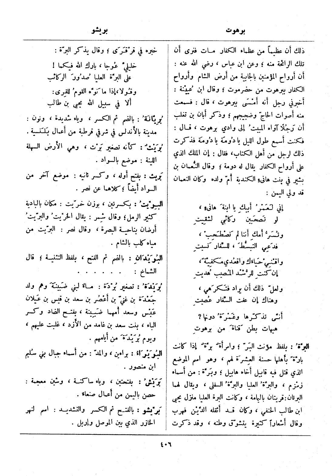 بلفظ مؤنث البرّ، وامرأة برّة إذا كانت بارّة بأهلها حسنة العشرة لهم، وهو اسم الموضع الذي قتل فيه قابيل أخاه هابيل، وبرّة: من أسماء زمزم، والبرّة العليا والبرّة السفلى، ويقال لهما البرتان: قريتان باليمامة، وكانت البرة العليا منزل يحيى ابن طالب الحنفي، وكان قد أثقله الدّين فهرب وقال أشعارا كثيرة يتشوّق وطنه، وقد ذكرت خبره في قرقرى، وقال يذكر البرّة: