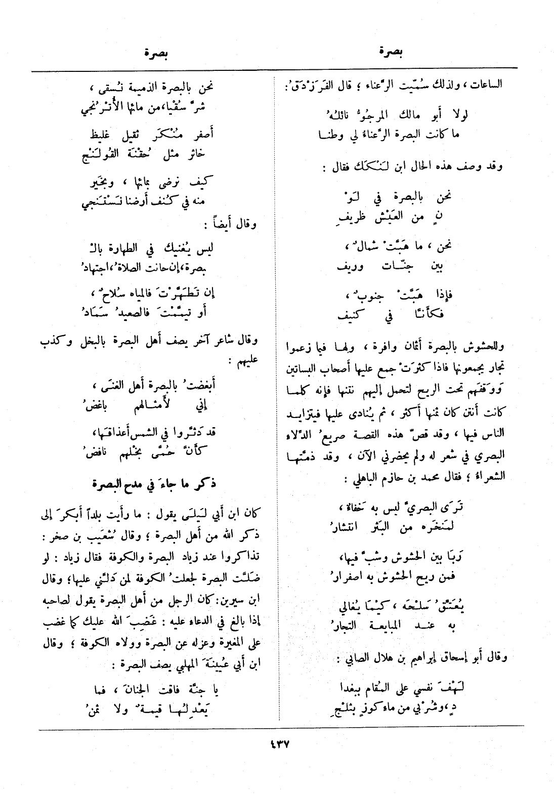 وقال شاعر آخر يصف أهل البصرة بالبخل وكذب عليهم: