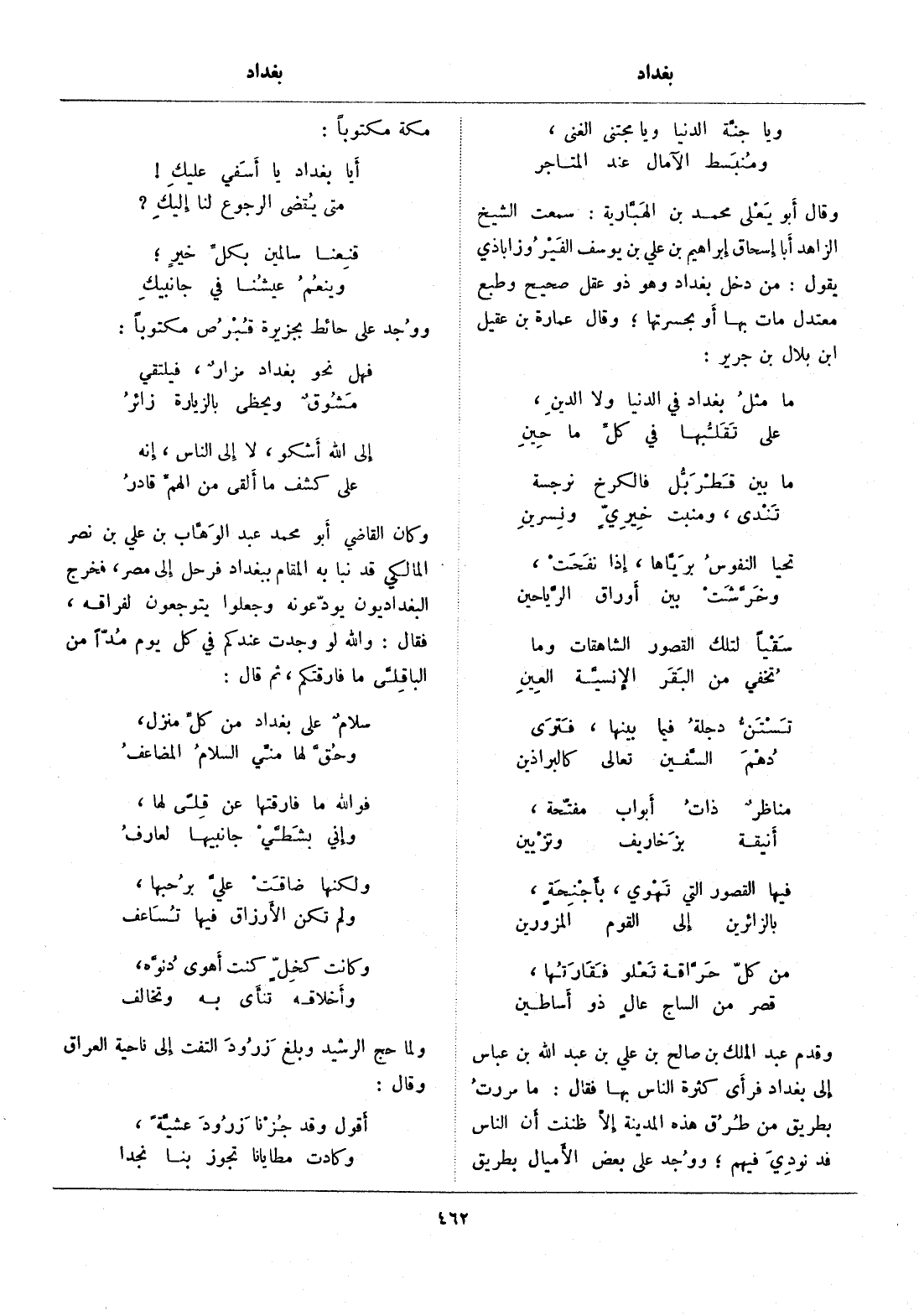 أيا بغداد يا أسفي عليك! ... متى يقضى الرجوع لنا إليك؟