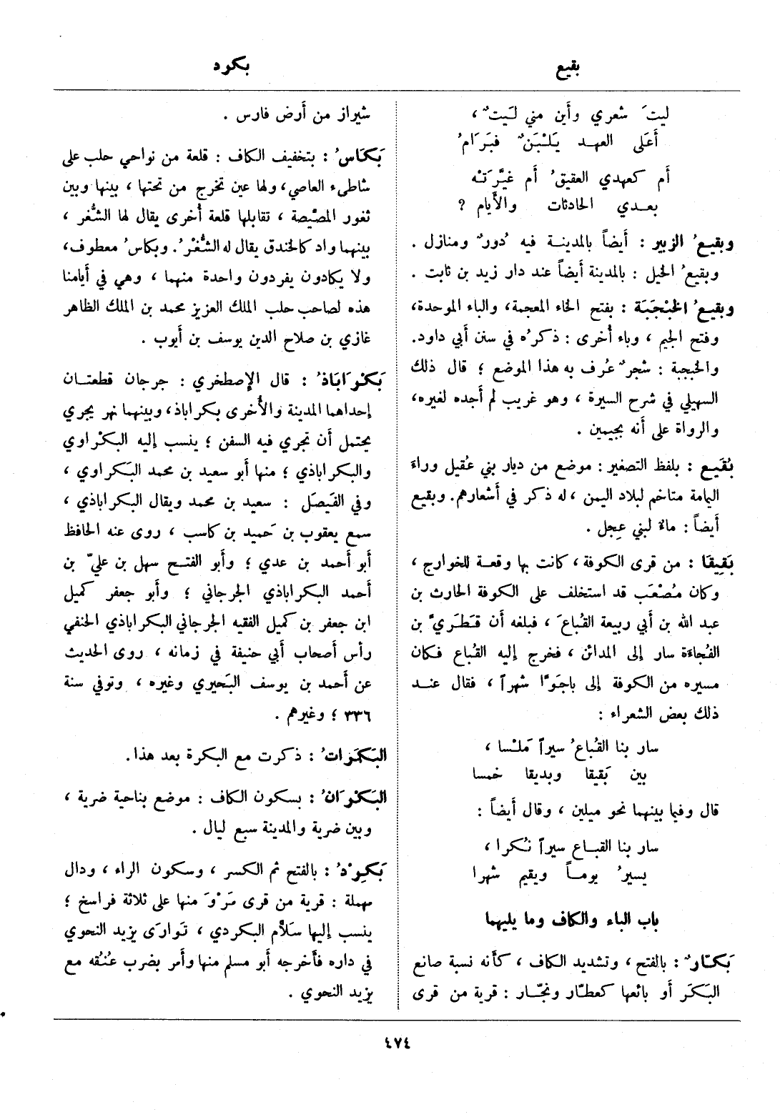 باب الباء والكاف وما يليهما