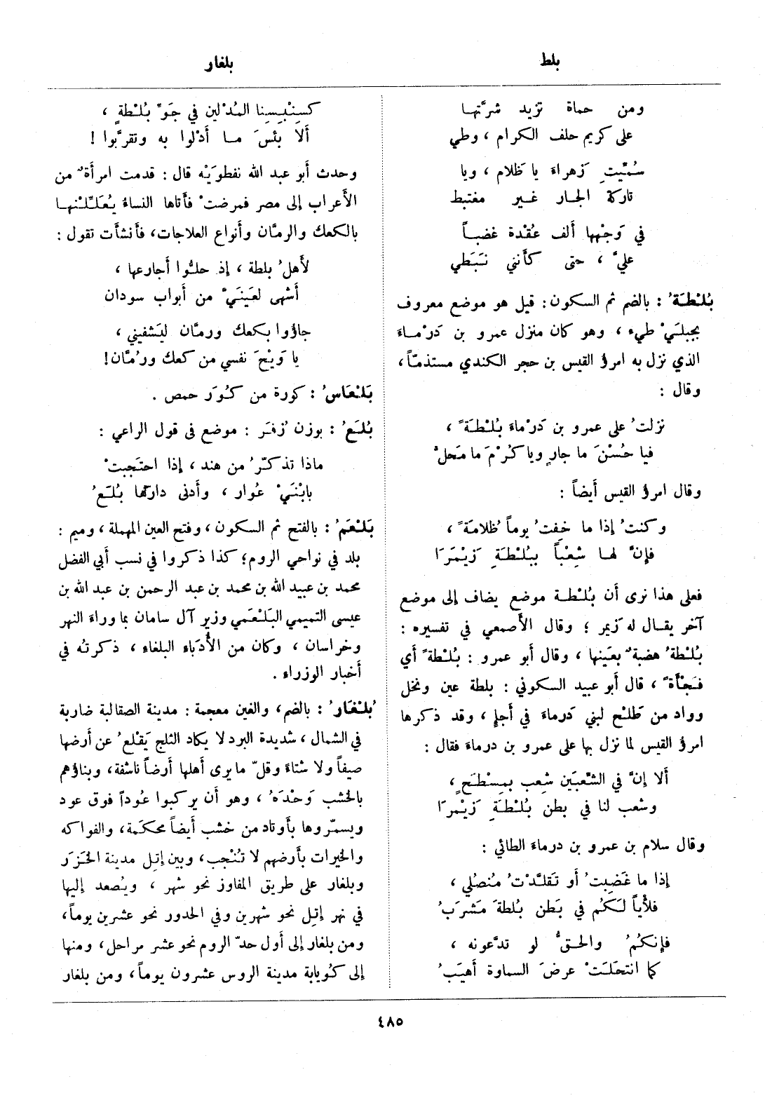 فعلى هذا نرى أن بلطة موضع يضاف إلى موضع آخر يقال له زيمر، وقال الأصمعي في تفسيره: