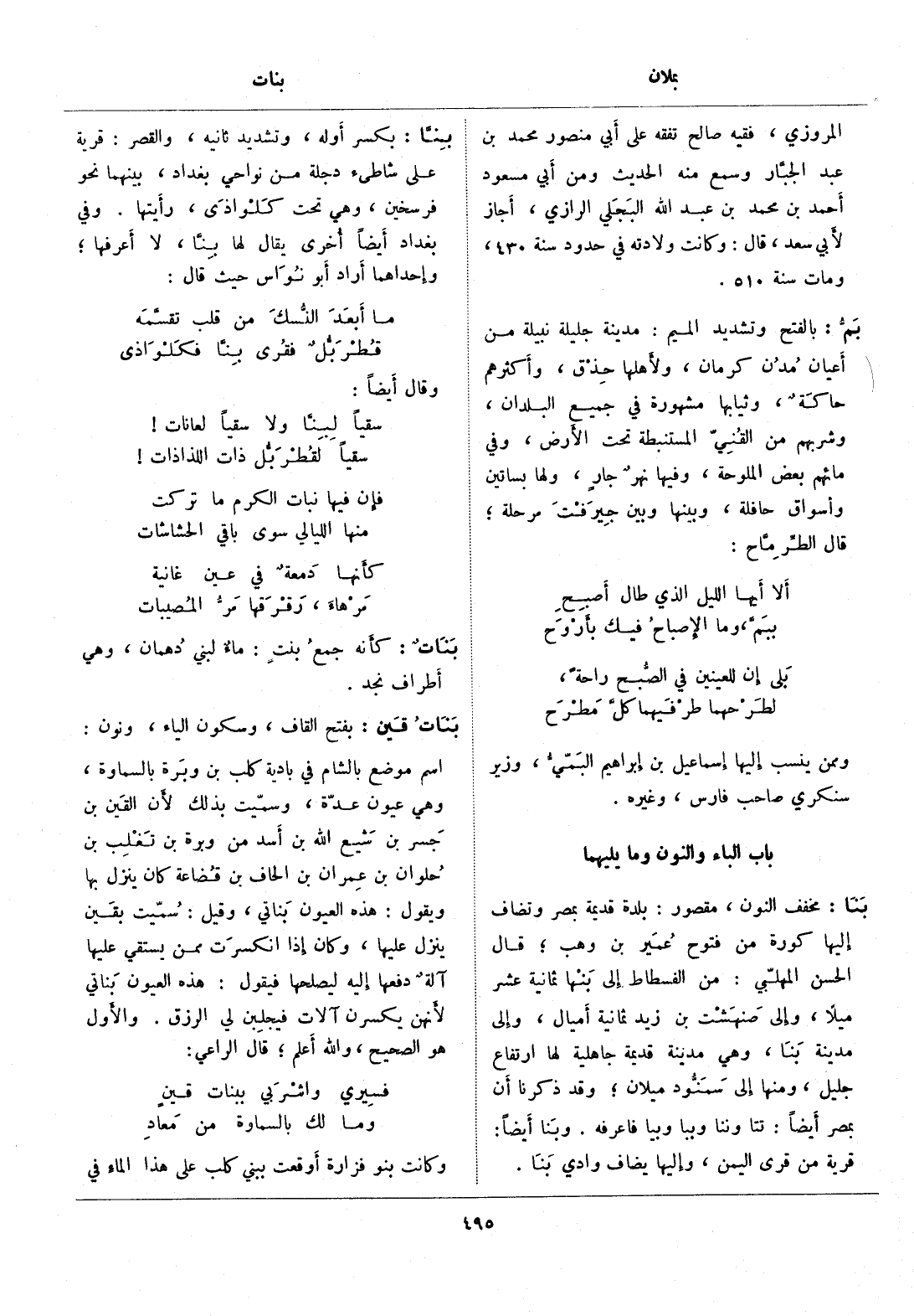 كأنه جمع بنت: ماء لبني دهمان، وهي أطراف نجد.