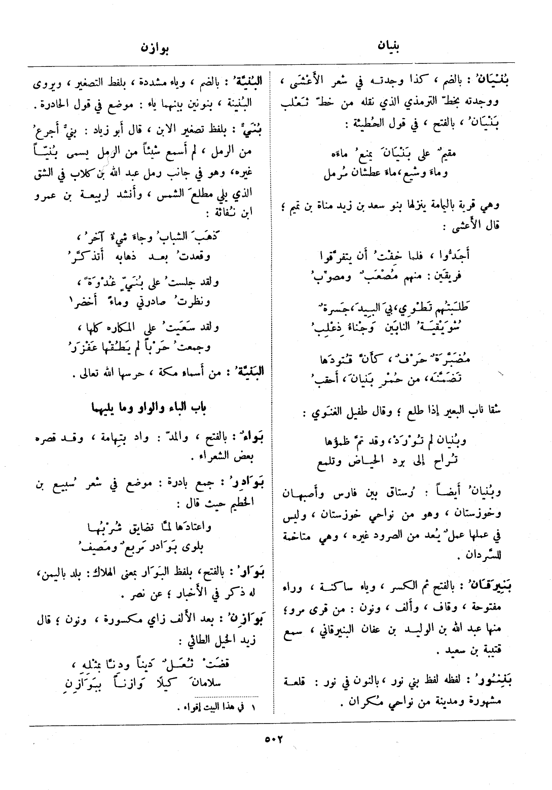 بالضم، كذا وجدته في شعر الأعشى، ووجدته بخطّ الترمذي الذي نقله من خطّ ثعلب بنيان، بالفتح، في قول الحطيئة: