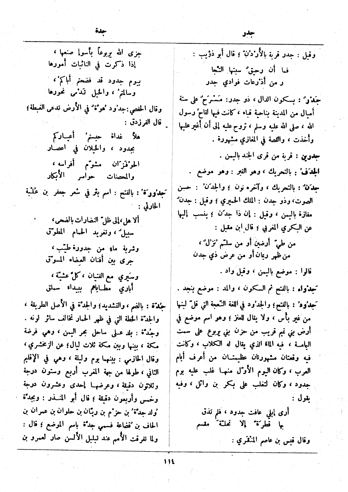 بالفتح والجدود في اللغة النّعجة التي قلّ لبنها من غير بأس، ولا يقال للعنز وهو اسم موضع في أرض بني تميم قريب من حزن بني يربوع على سمت اليمامة، فيه الماء الذي يقال له الكلاب، وكانت فيه وقعتان مشهورتان عظيمتان من أعرف أيام العرب، وكان اليوم الأوّل منها غلب عليه يوم جدود، وكان لتغلب على بكر بن وائل، وفيه يقول: