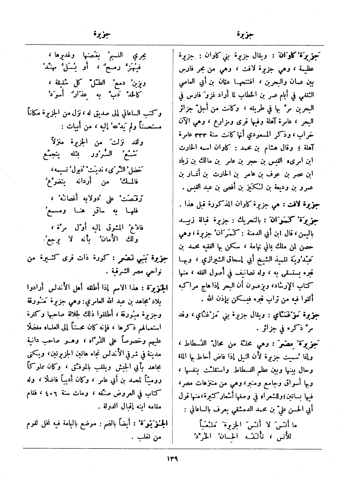ما أنس لا أنس الجزيرة ملعبا ... للأنس، تألفه الحسان الخرّد