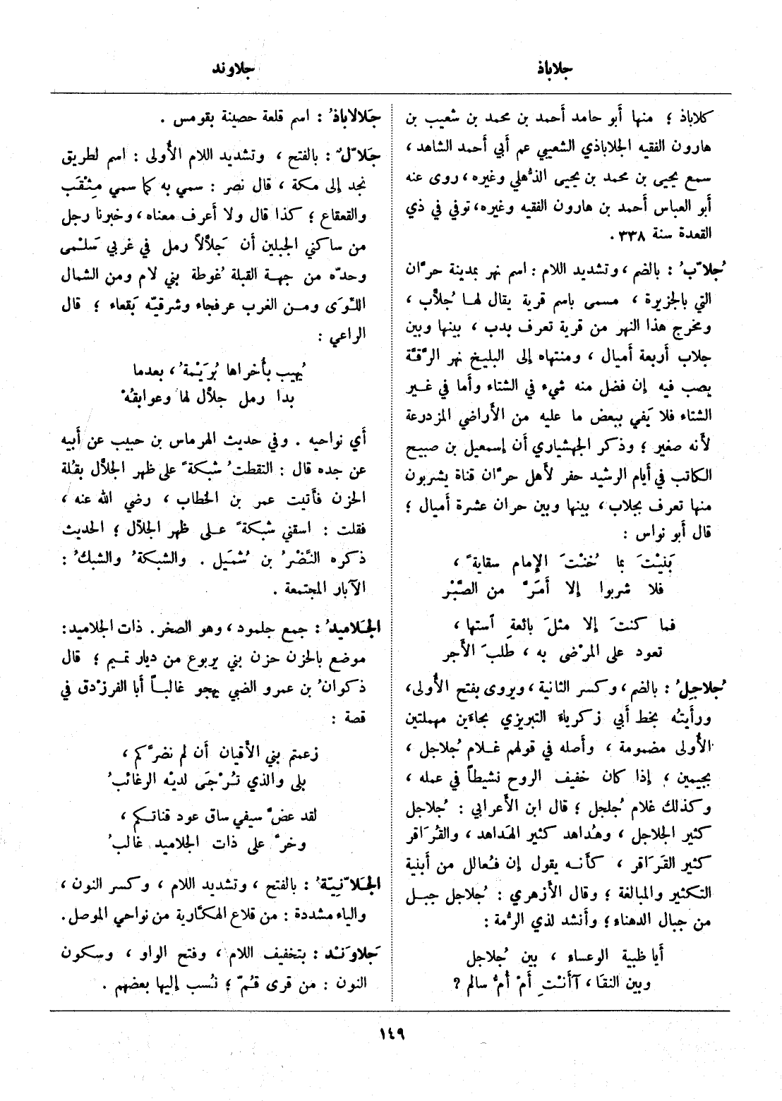 بالفتح، وتشديد اللام الأولى: اسم لطريق نجد إلى مكة، قال نصر: سمي به كما سمي مثقب والقعقاع كذا قال ولا أعرف معناه، وخبرنا رجل من ساكني الجبلين أن جلّالا رمل في غربي سلمى وحدّه من جهة القبلة غوطة بني لام ومن الشمال اللّوى ومن الغرب عرفجاء وشرقيّه بقعاء قال الراعي: