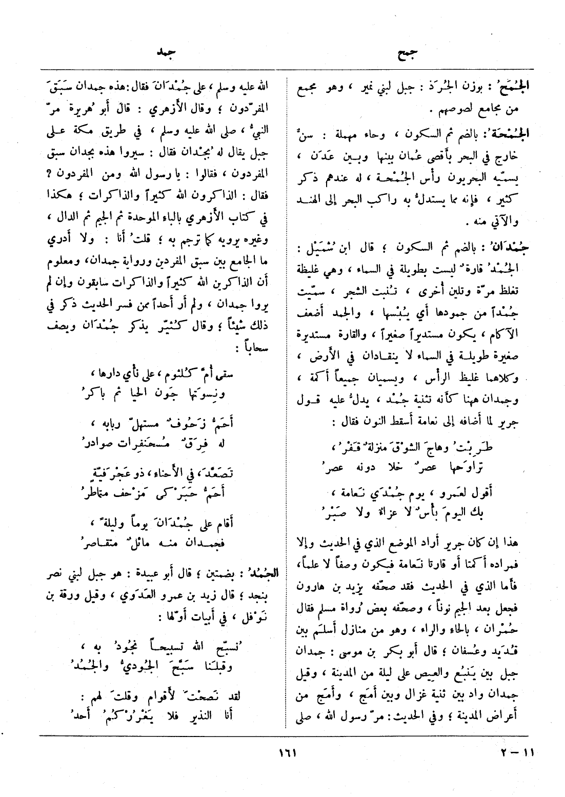 فقال: الذاكرون الله كثيرا والذاكرات هكذا في كتاب الأزهري بالباء الموحدة ثم الجيم ثم الدال، وغيره يرويه كما ترجم به قلت أنا: ولا أدري ما الجامع بين سبق المفردين ورواية جمدان، ومعلوم أن الذاكرين الله كثيرا والذاكرات سابقون وإن لم يروا جمدان، ولم أر أحدا ممن فسر الحديث ذكر في ذلك شيئا وقال كثيّر يذكر جمدان ويصف سحابا: