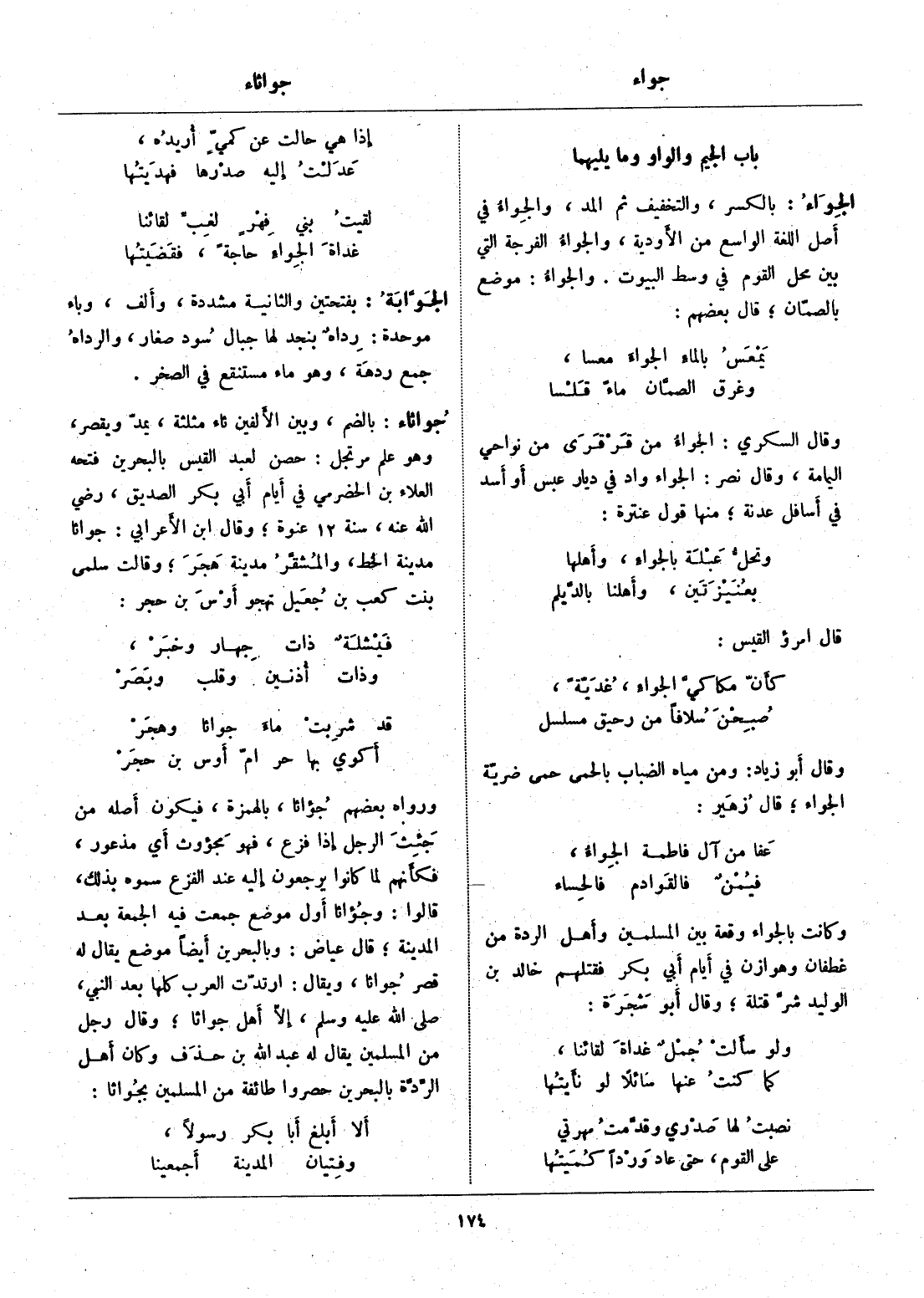 بالكسر، والتخفيف ثم المد، والجواء في أصل اللغة الواسع من الأودية، والجواء الفرجة التي بين محل القوم في وسط البيوت. والجواء: موضع بالصمّان قال بعضهم: