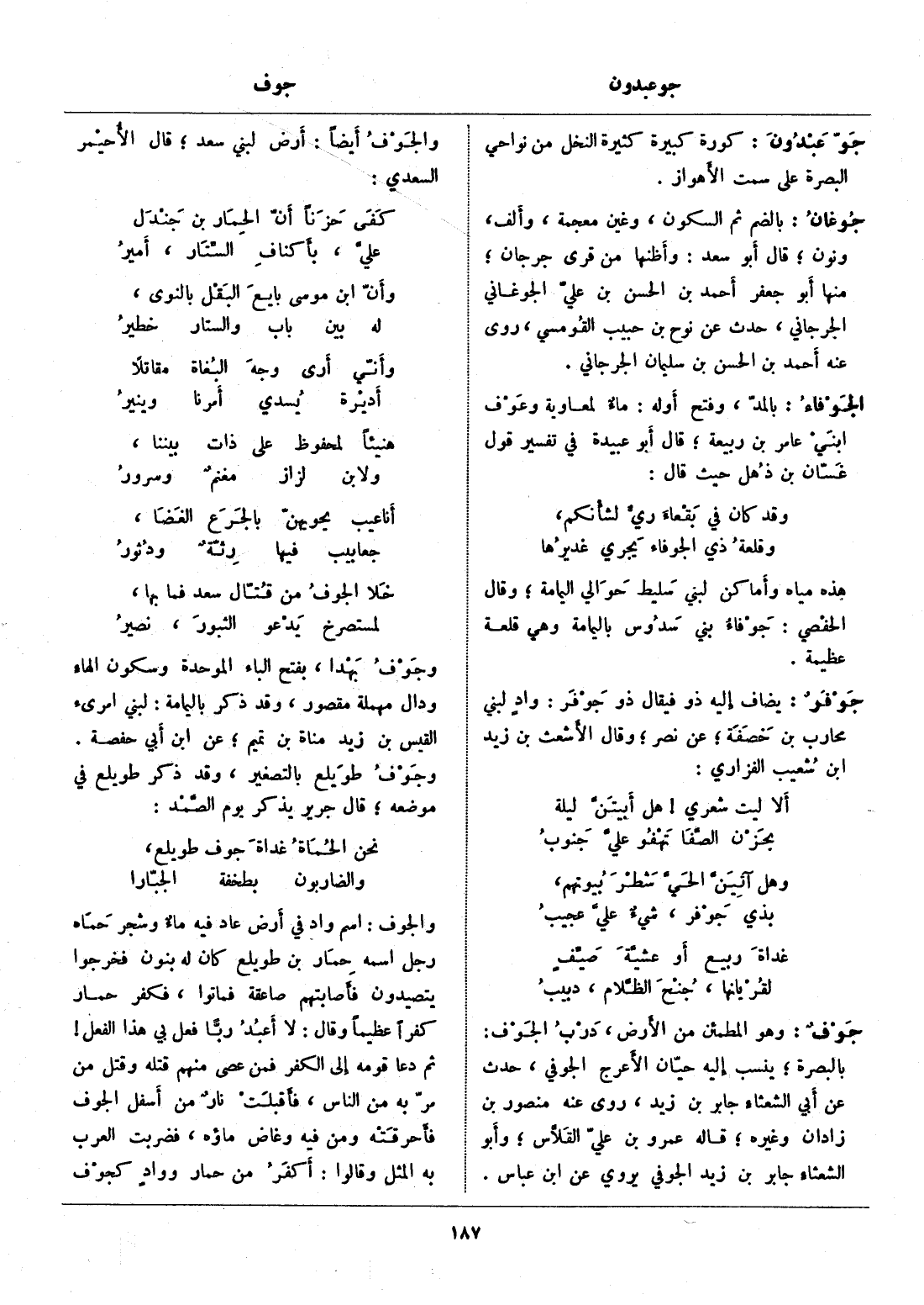 والجوف أيضا: أرض لبني سعد، قال الأحيمر السعدي: