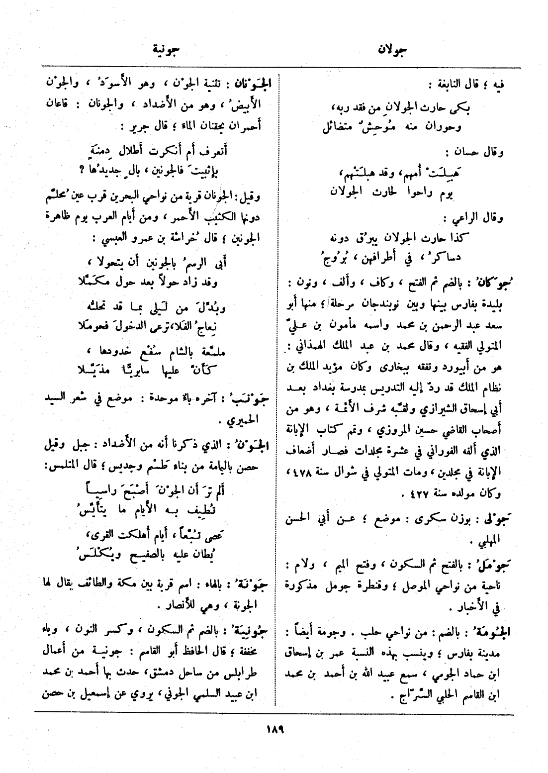 وقيل: الجونان قرية من نواحي البحرين قرب عين محلّم دونها الكثيب الأحمر، ومن أيام العرب يوم ظاهرة الجونين، قال خراشة بن عمرو العبسي: