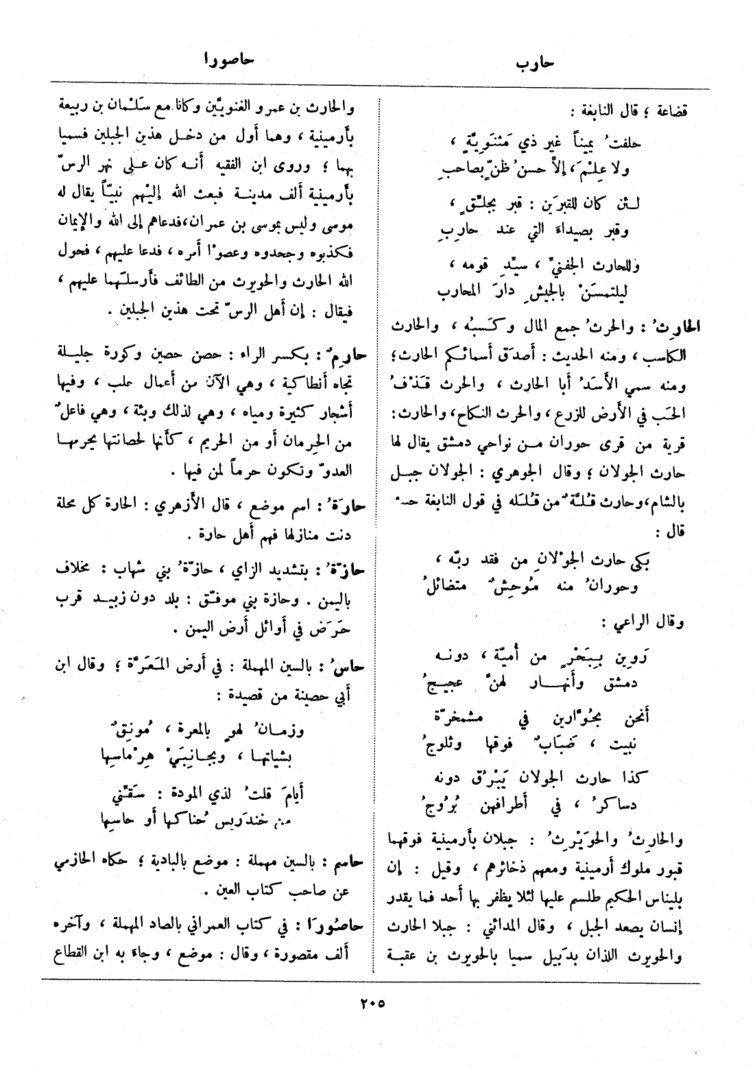 والحارث والحويرث: جبلان بأرمينية فوقهما قبول ملوك أرمينية ومعهم ذخائرهم، وقيل: إن بليناس الحكيم طلسم عليها لئلا يظفر بها أحد فما يقدر إنسان يصعد الجبل، وقال المدائني: جبلا الحارث والحويرث اللذان بدبيل سميا بالحويرث بن عقبة والحارث بن عمرو الغنويّين وكانا مع سلمان بن ربيعة بأرمينية، وهما أول من دخل هذين الجبلين فسميا بهما، وروى ابن الفقيه أنه كان على نهر الرسّ بأرمينية ألف مدينة فبعث الله إليهم نبيّا يقال له موسى وليس بموسى بن عمران، فدعاهم إلى الله والإيمان فكذبوه وجحدوه وعصوا أمره، فدعا عليهم، فحول الله الحارث والحويرث من الطائف فأرسلهما عليهم، فيقال: إن أهل الرسّ تحت هذين الجبلين.