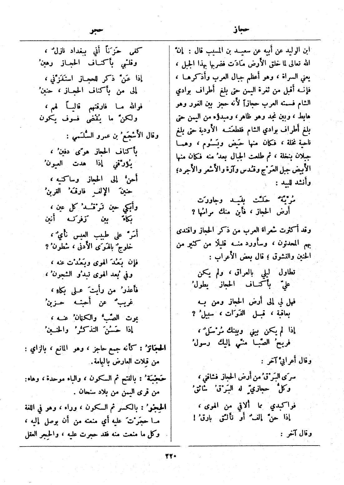 وقد أكثرت شعراء العرب من ذكر الحجاز واقتدى بهم المحدثون، وسأورد منه قليلا من كثير من الحنين والتشوق، قال بعض الأعراب: