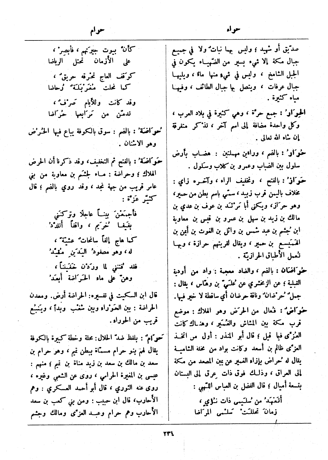 بلفظ ضدّ الحلال: محلة وخطة كبيرة بالكوفة يقال لهم بنو حرام مسمّاة ببطن تميم، وهو حرام بن سعد بن مالك بن سعد بن زيد مناة بن تميم، منهم: