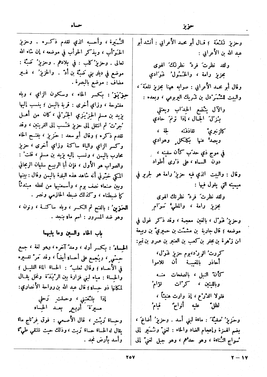 موضع في ديار بني ضبّة بن أدّ. والحزيز، غير مضاف: موضع بالبصرة.
