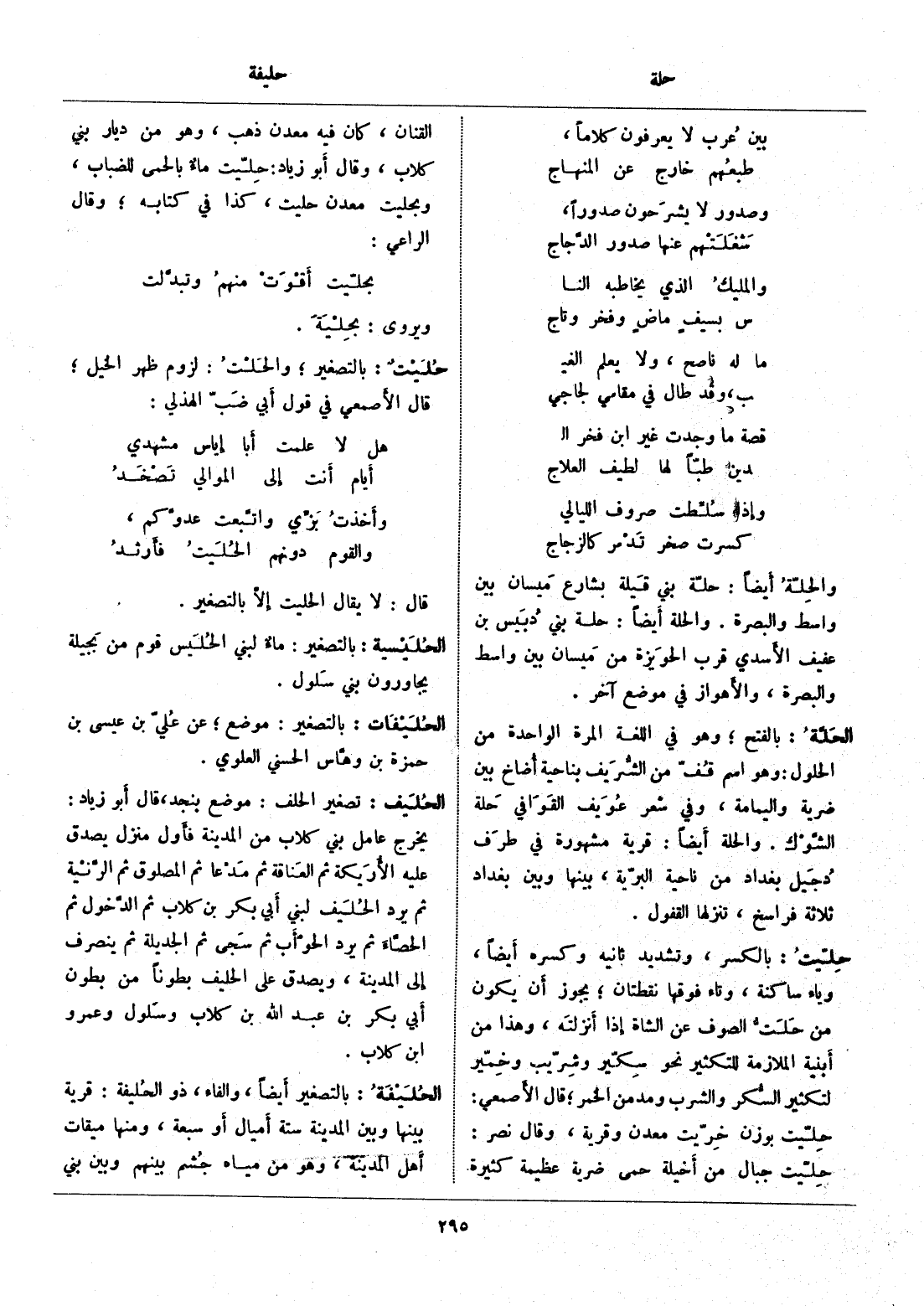 بالفتح، وهو في اللغة المرة الواحدة من الحلول: وهو اسم قفّ من الشّريف بناحية أضاخ بين ضرية واليمامة، وفي شعر عويف القوافي حلة الشّوك. والحلة أيضا: قرية مشهورة في طرف دجيل بغداد من ناحية البرّية، بينها وبين بغداد ثلاثة فراسخ، تنزلها القفول.