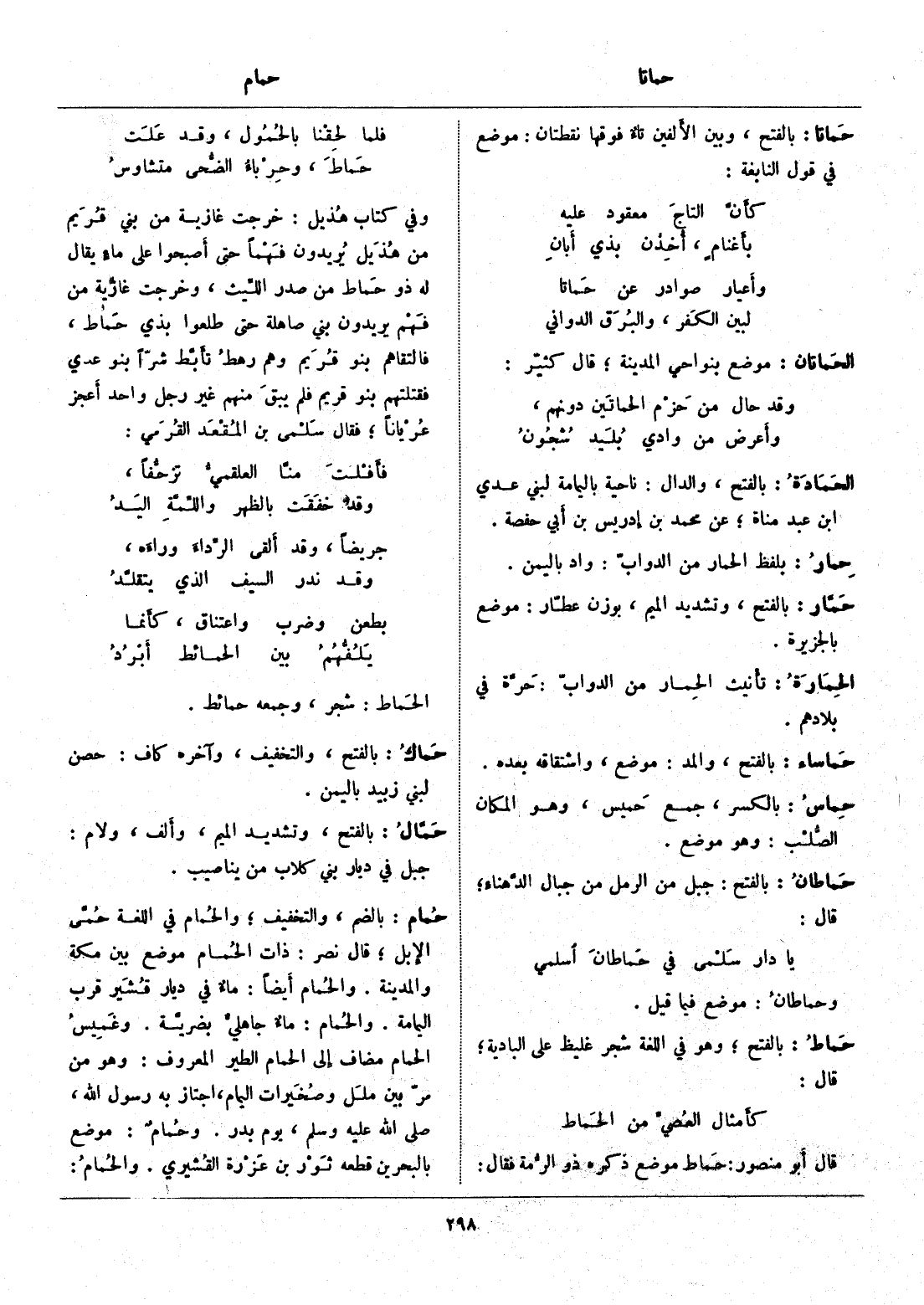 بالضم، والتخفيف، والحمام في اللغة حمّى الإبل، قال نصر: ذات الحمام موضع بين مكة والمدينة. والحمام أيضا: ماء في ديار قشير قرب اليمامة. والحمام: ماء جاهليّ بضريّة. وغميس الحمام مضاف إلى الحمام الطير المعروف: وهو من مرّ بين ملل وصخيرات اليمام، اجتاز به رسول الله، صلى الله عليه وسلم، يوم بدر. وحمام: موضع بالبحرين قطعه ثور بن عزرة القشيري. والحمام: