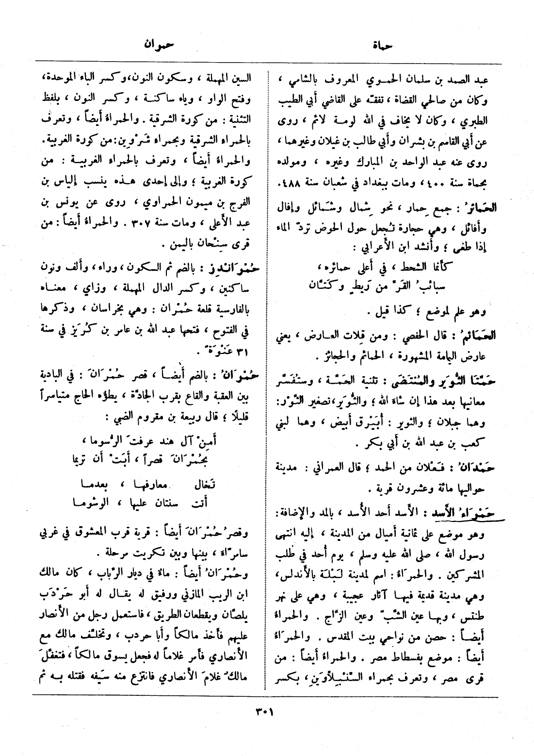 وهو موضع على ثمانية أميال من المدينة، إليه انتهى رسول الله، صلى الله عليه وسلم، يوم أحد في طلب المشركين. والحمراء: اسم لمدينة لبلة بالأندلس، وهي مدينة قديمة فيها آثار عجيبة، وهي على نهر طنتس، وبها عين الشّبّ وعين الزّاج. والحمراء أيضا: حصن من نواحي بيت المقدس. والحمراء أيضا: موضع بفسطاط مضر. والحمراء أيضا: من قرى مصر، وتعرف بحمراء السّنبلّاوين، بكسر السين المهملة، وسكون النون، وكسر الباء الموحدة، وفتح الواو، وياء ساكنة، وكسر النون، بلفظ التثنية: من كورة الشرقية. والحمراء أيضا، وتعرف بالحمراء الشرقية وبحمراء شروين: من كورة الغربية.