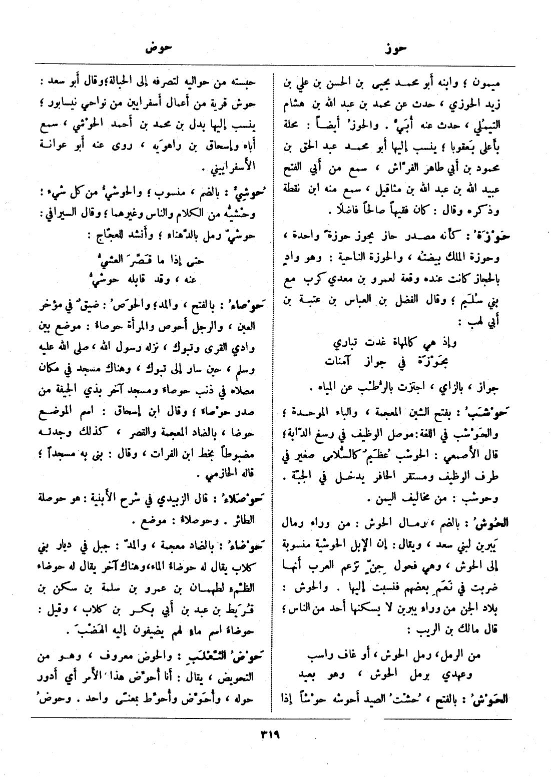 والحوض معروف، وهو من التحويض، يقال: أنا أحوّض هذا الأمر أي أدور حوله، وأحوّض وأحوّط بمعنى واحد. وحوض