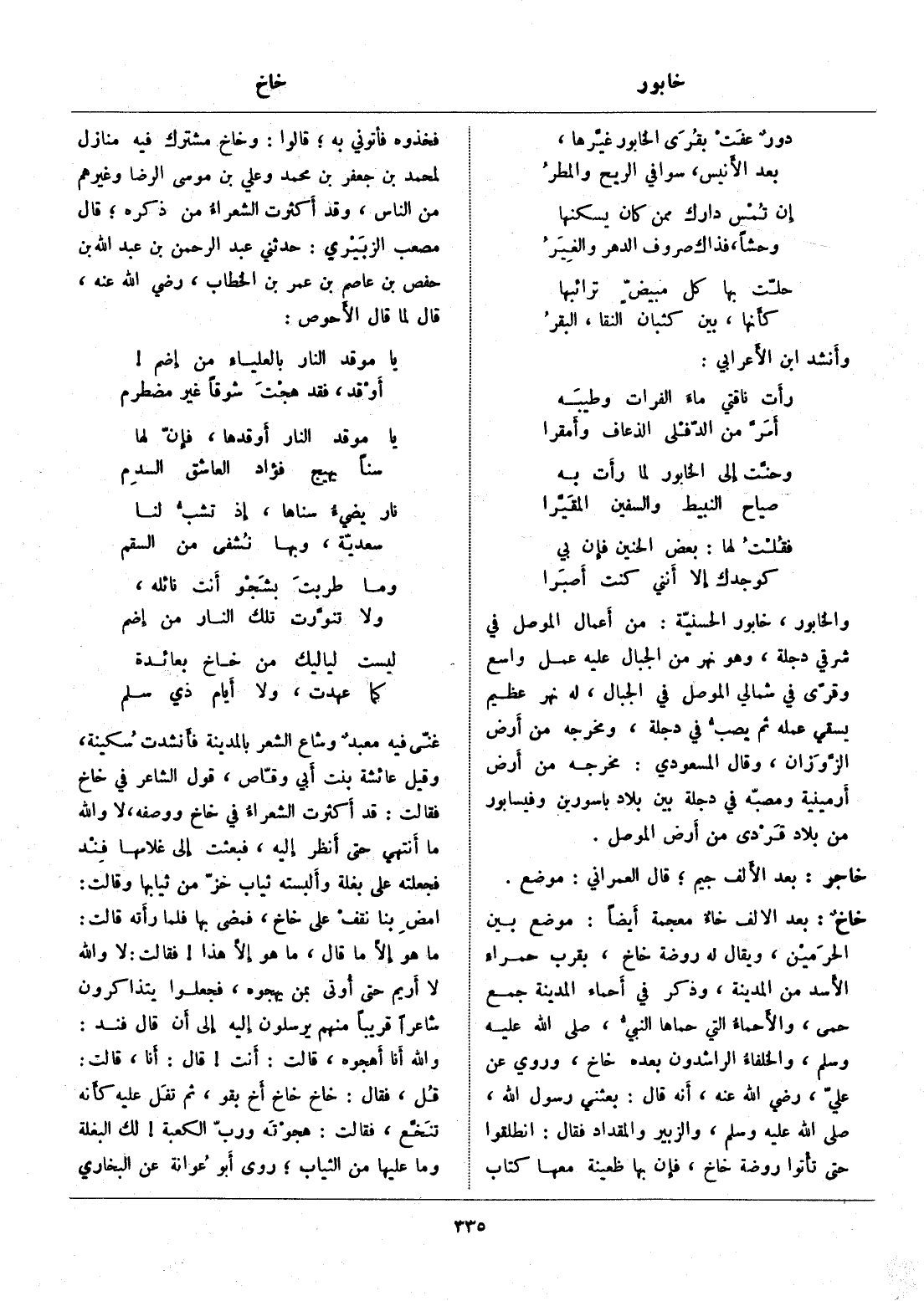والخابور، خابور الحسنيّة: من أعمال الموصل في شرقي دجلة، وهو نهر من الجبال عليه عمل واسع وقرّى في شمالي الموصل في الجبال، له نهر عظيم يسقي عمله ثم يصبّ في دجلة، ومخرجه من أرض الزّوزان، وقال المسعودي: مخرجه من أرض أرمينية ومصبّه في دجلة بين بلاد باسورين وفيسابور من بلاد قردى من أرض الموصل.