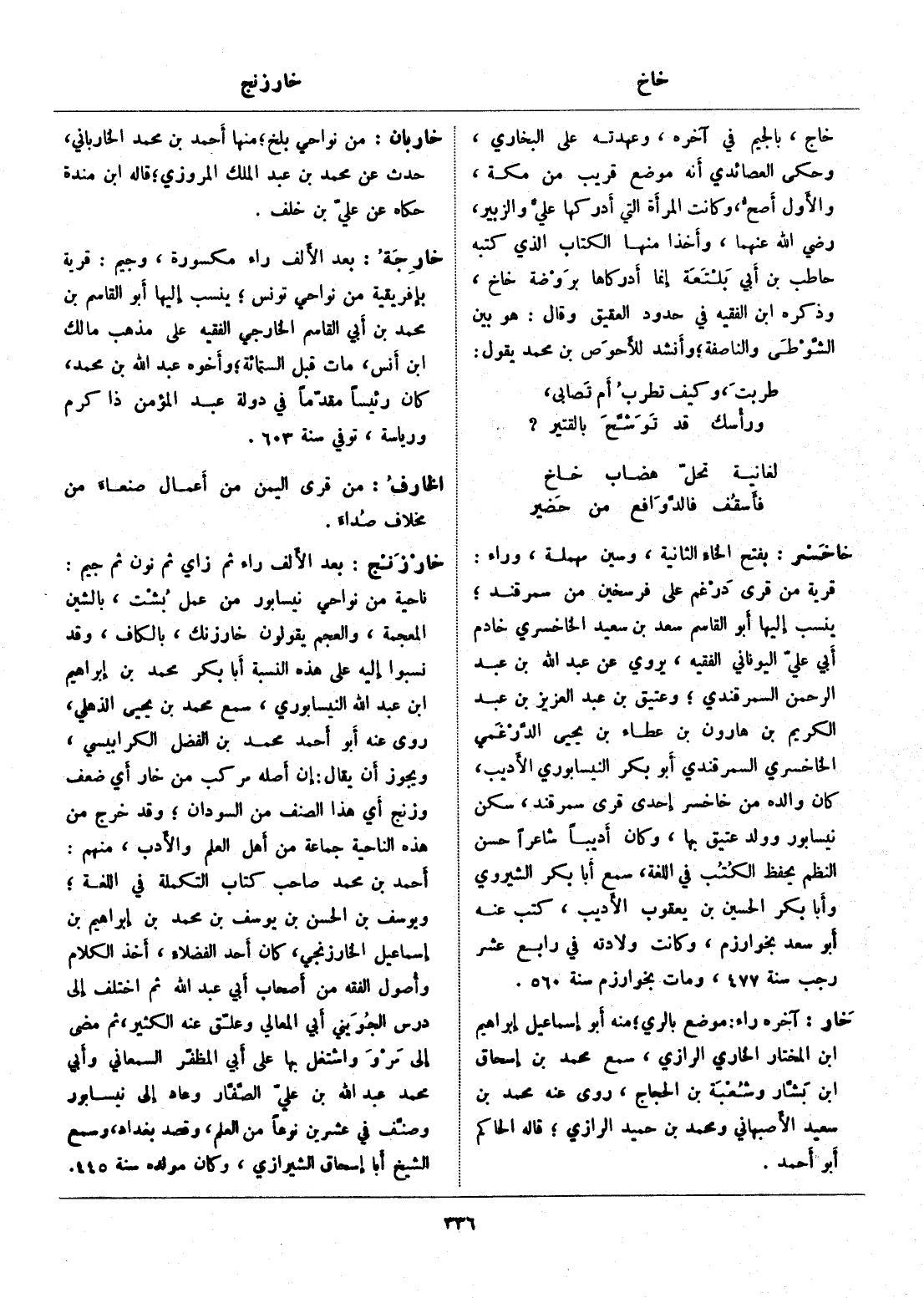 أحمد بن محمد صاحب كتاب التكملة في اللغة، ويوسف بن الحسن بن يوسف بن محمد بن إبراهيم بن إسماعيل الخارزنجي، كان أحد الفضلاء، أخذ الكلام وأصول الفقه من أصحاب أبي عبد الله ثم اختلف إلى درس الجويني أبي المعالي وعلّق عنه الكثير، ثم مضى إلى مرو واشتغل بها على أبي المظفّر السمعاني وأبي محمد عبد الله بن عليّ الصّفّار وعاد إلى نيسابور وصنّف في عشرين نوعا من العلم، وقصد بغداد، وسمع الشيخ أبا إسحاق الشيرازي، وكان مولده سنة 445.