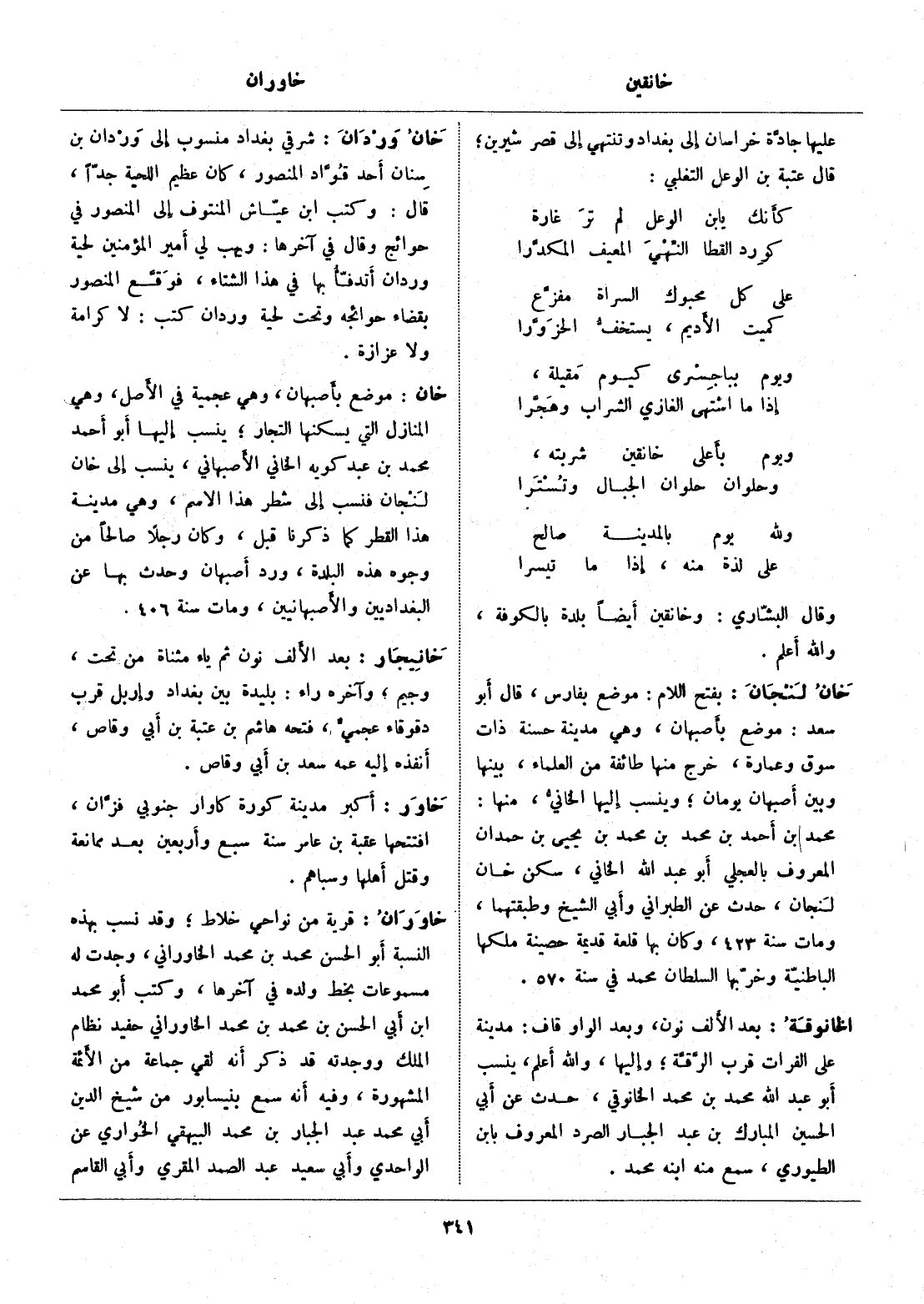 وقال البشّاري: وخانقين أيضا بلدة بالكوفة، والله أعلم.