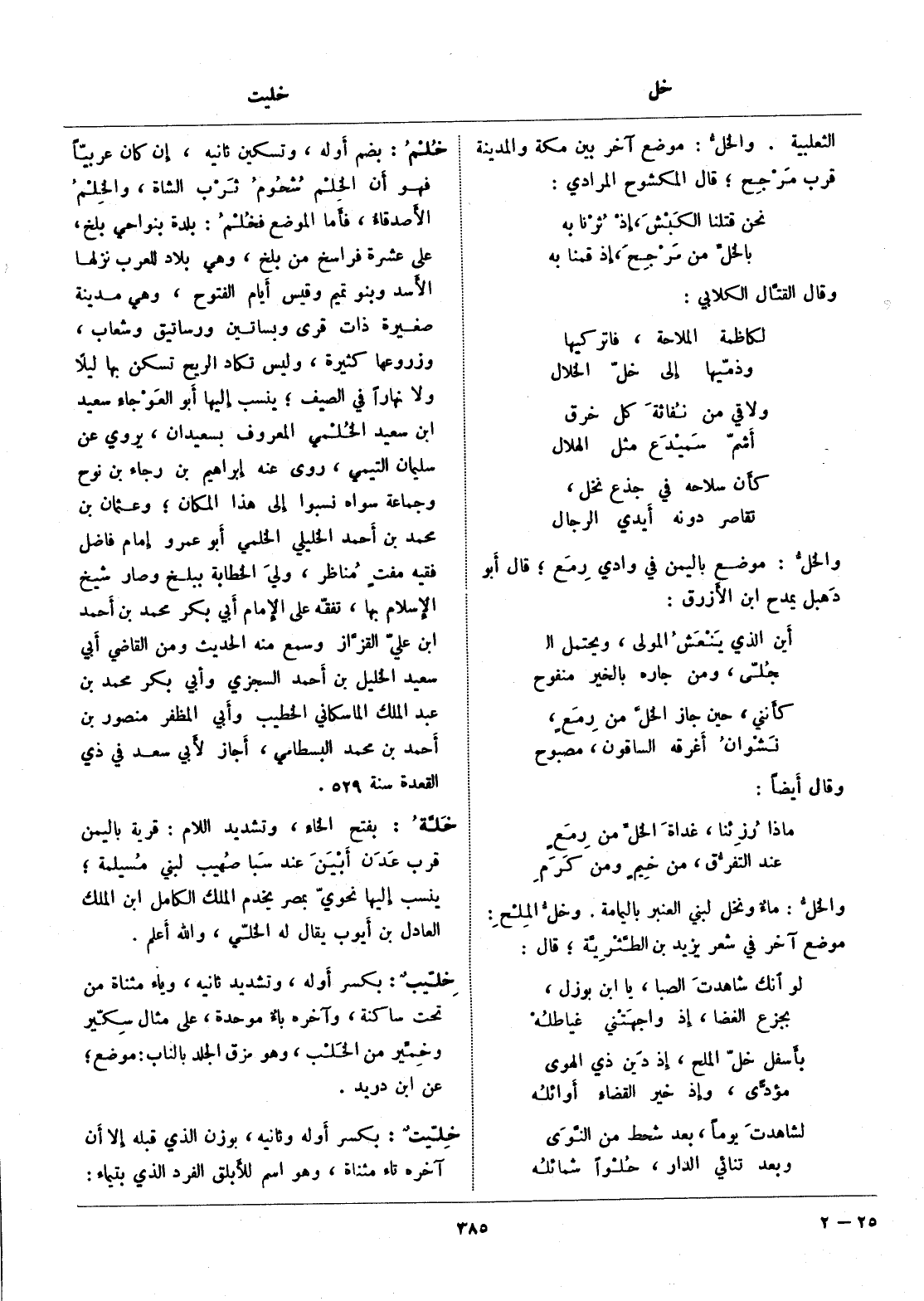 بفتح الخاء، وتشديد اللام: قرية باليمن قرب عدن أبين عند سبا صهيب لبني مسيلمة، ينسب إليها نحويّ بمصر يخدم الملك الكامل ابن الملك العادل بن أيوب يقال له الخلّي، والله أعلم.