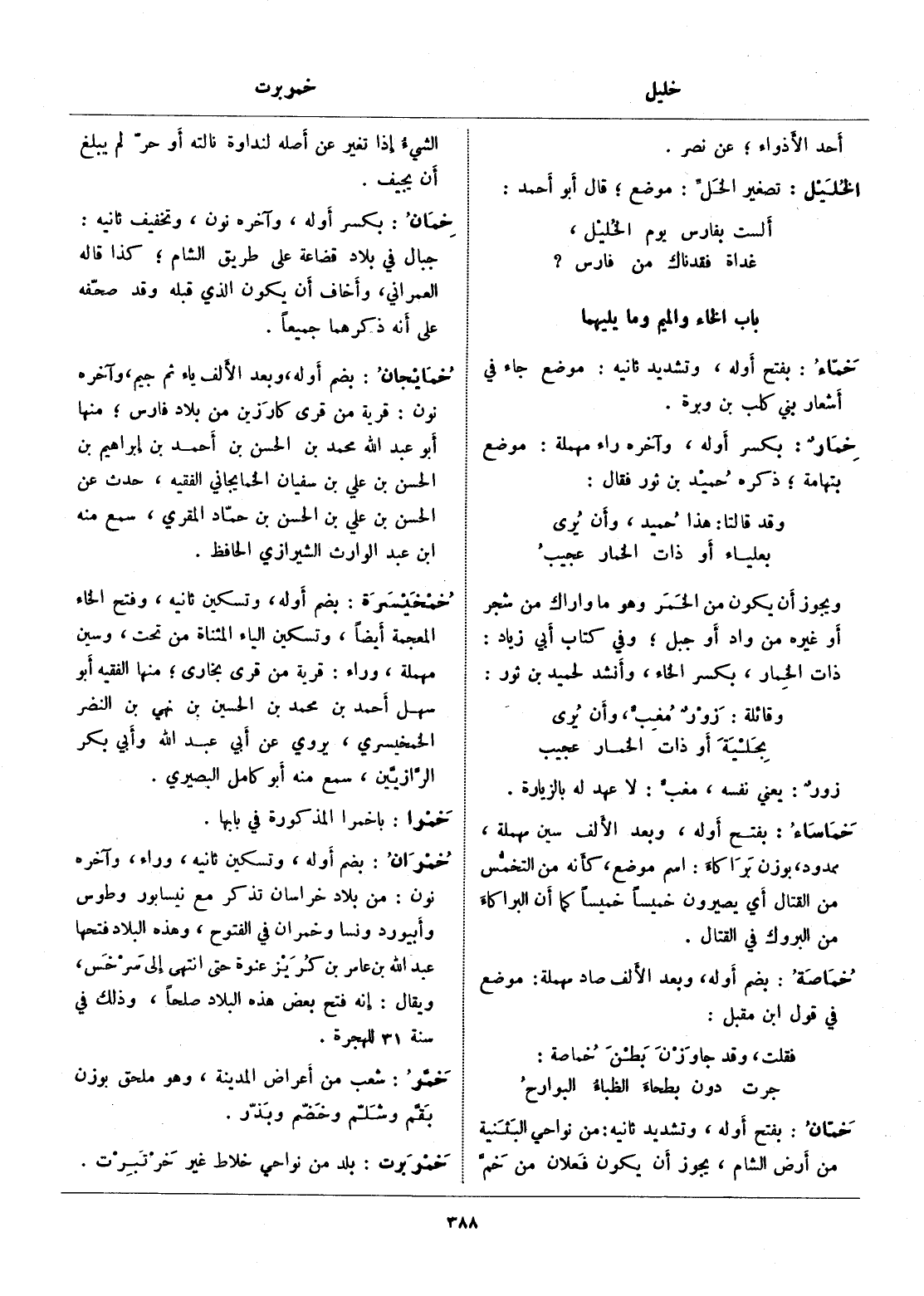 بضم أوله، وتسكين ثانيه، وفتح الخاء المعجمة أيضا، وتسكين الياء المثناة من تحت، وسين مهملة، وراء: قرية من قرى بخارى، منها الفقيه أبو سهل أحمد بن محمد بن الحسين بن نهي بن النضر الخمخيسري، يروي عن أبي عبد الله وأبي بكر الرّازيّين، سمع منه أبو كامل البصيري.
