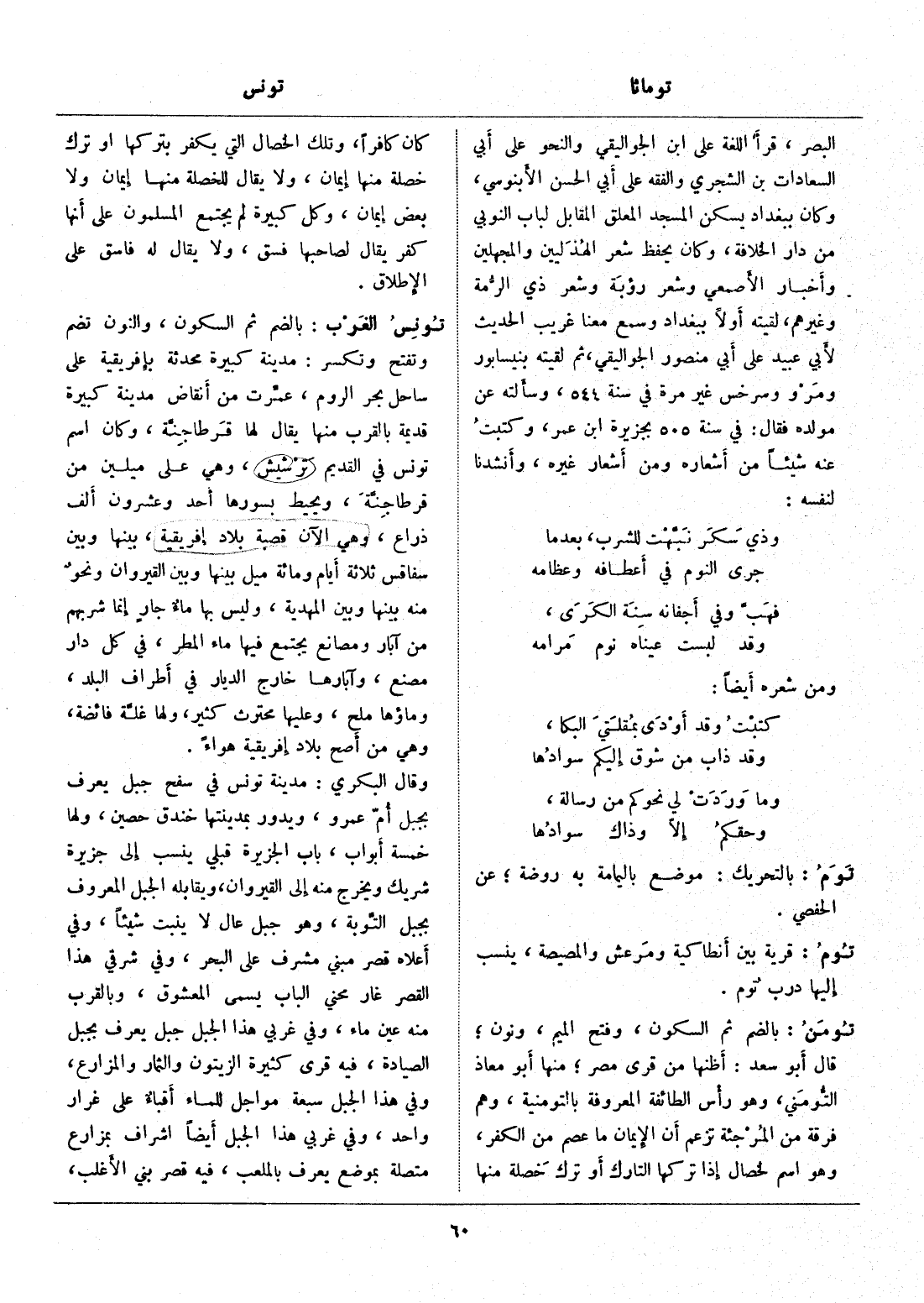 بالضم ثم السكون، وفتح الميم، ونون قال أبو سعد: أظنها من قرى مصر منها أبو معاذ التّومني، وهو رأس الطائفة المعروفة بالتومنية، وهم فرقة من المرجئة تزعم أن الإيمان ما عصم من الكفر، وهو اسم لخصال إذا تركها التارك أو ترك خصلة منها كان كافرا، وتلك الخصال التي يكفر بتركها او ترك خصلة منها إيمان، ولا يقال للخصلة منها إيمان ولا بعض إيمان، وكل كبيرة لم يجتمع المسلمون على أنها كفر يقال لصاحبها فسق، ولا يقال له فاسق على الإطلاق.