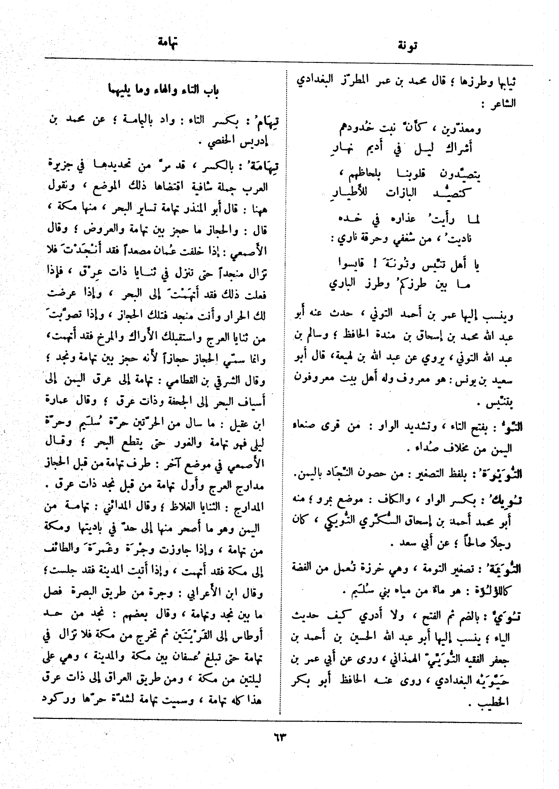 بكسر التاء: واد باليمامة عن محمد بن إدريس الحفصي.