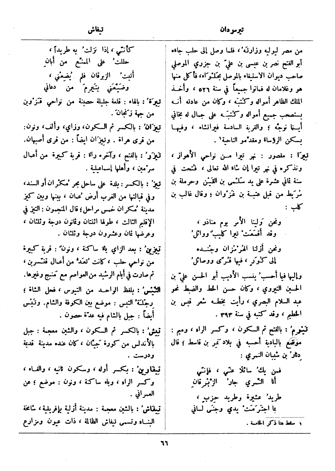 وإليها فيما أحسب ينسب الأديب أبو الحسن عليّ بن الحسين التيروي، وكان حسن الخط والضبط نحو عبد السلام البصري، رأيت بخطه شعر قيس بن الخطيم، وقد كتبه في سنة 393.