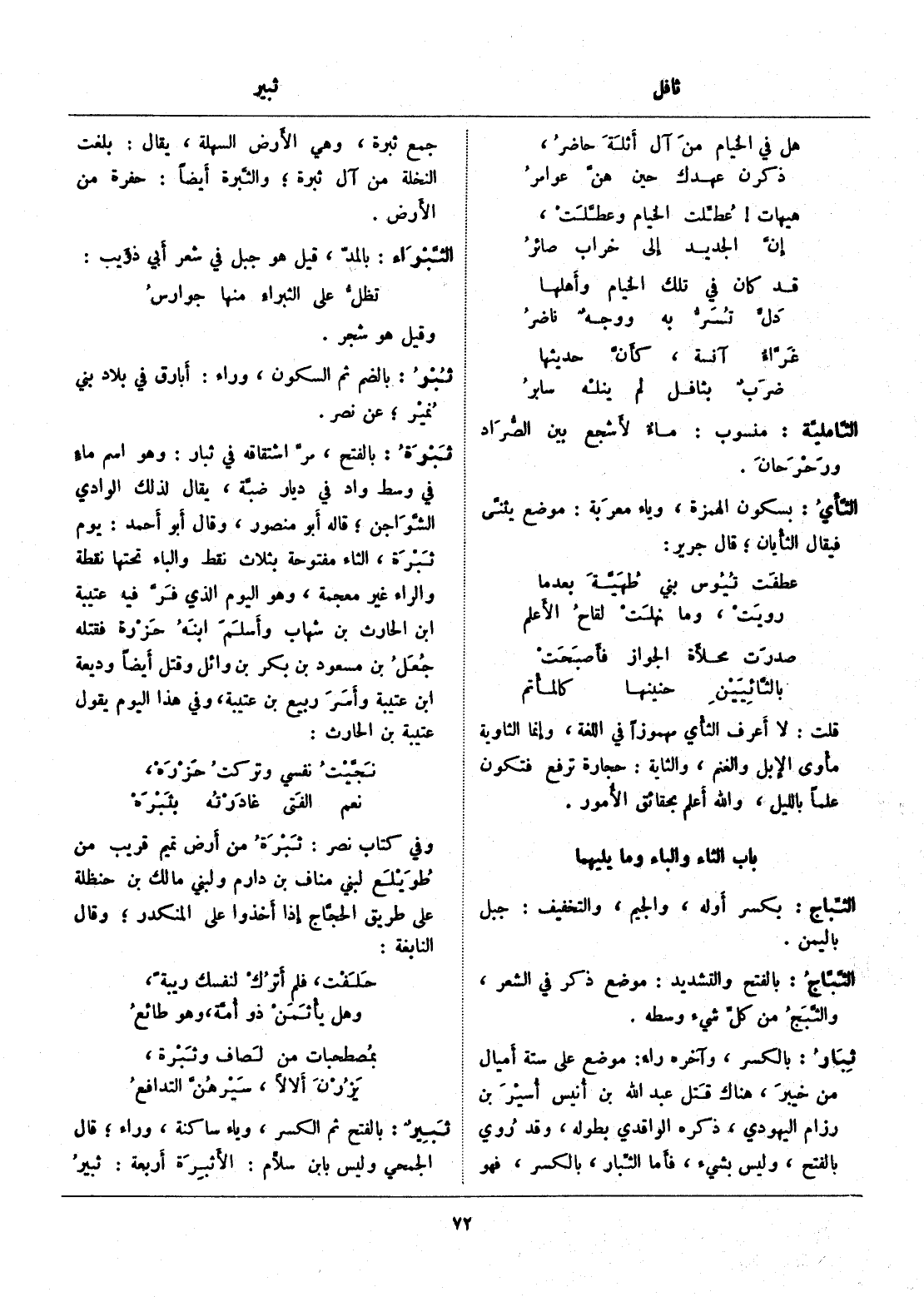 باب الثاء والباء وما يليهما