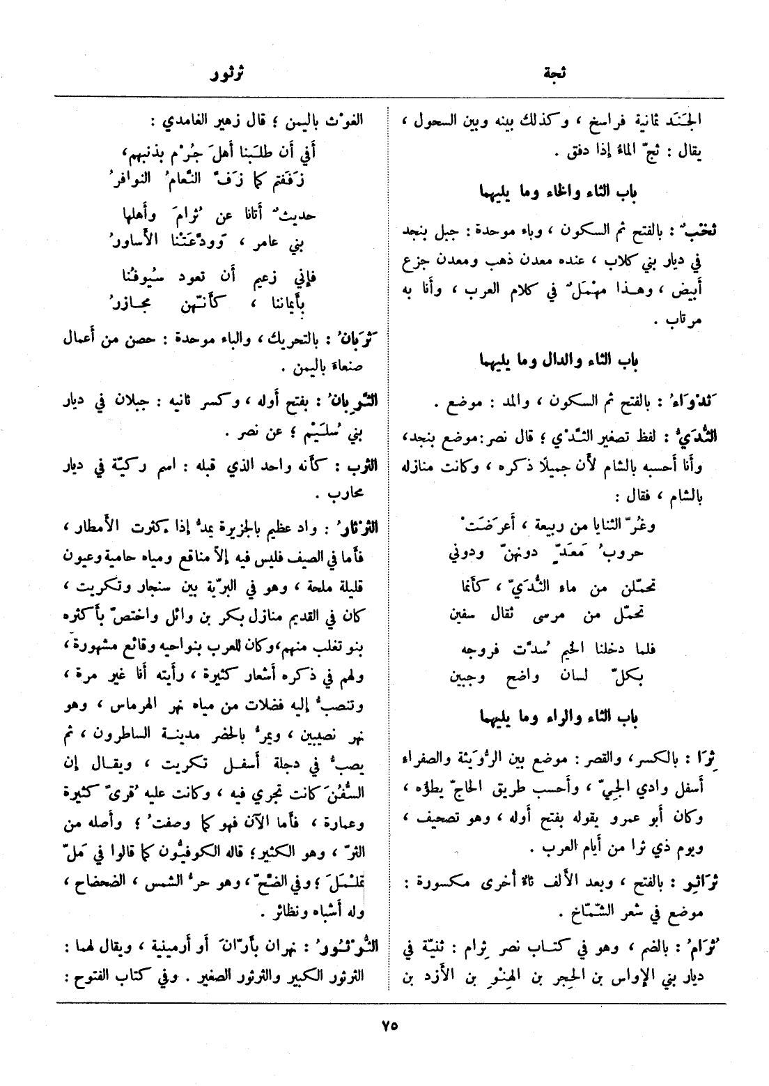 واد عظيم بالجزيرة يمدّ إذا كثرت الأمطار، فأما في الصيف فليس فيه إلّا مناقع ومياه حاميه وعيون قليلة ملحة، وهو في البرّية بين سنجار وتكريت، كان في القديم منازل بكر بن وائل واختصّ بأكثره بنو تغلب منهم، وكان للعرب بنواحيه وقائع مشهورة، ولهم في ذكره أشعار كثيرة، رأيته أنا غير مرة، وتنصبّ إليه فضلات من مياه نهر الهرماس، وهو نهر نصيبين، ويمرّ بالحضر مدينة الساطرون، ثم يصبّ في دجلة أسفل تكريت، ويقال إن السّفن كانت تجري فيه، وكانت عليه قرى كثيرة وعمارة، فأما الآن فهو كما وصفت وأصله من الثرّ، وهو الكثير قاله الكوفيّون كما قالوا في ملّ تململ وفي الضّحّ، وهو حرّ الشمس، الضحضاح، وله أشباه ونظائر.