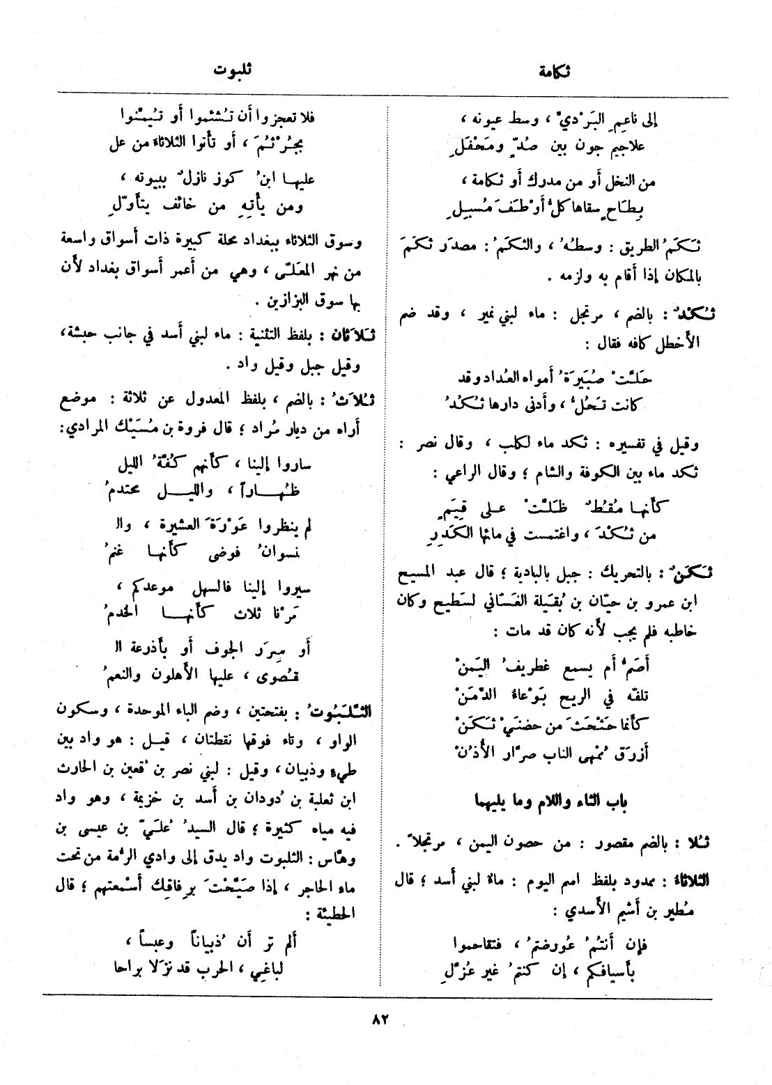 بفتحتين، وضم الباء الموحدة، وسكون الواو، وتاء فوقها نقطتان، قيل: هو واد بين طيء وذبيان، وقيل: لبني نصر بن قعين بن الحارث ابن ثعلبة بن دودان بن أسد بن خزيمة، وهو واد فيه مياه كثيرة قال السيد عليّ بن عيسى بن وهّاس: الثلبوت واد يدق إلى وادي الرّمة من تحت ماء الحاجر، إذا صيّحت برفاقك أسمعتهم قال الحطيئة: