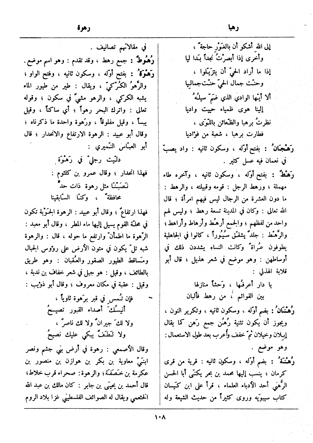 بفتح أوّله، وسكون ثانيه، وفتح الواو، والرّهو الكركيّ، ويقال: طير من طيور الماء يشبه الكركي، والرهو مشي في سكون، وقوله تعالى: وَاتْرُكِ الْبَحْرَ رَهْواً 44: 24، أي ساكنا، وقيل يبسا، وقيل مفلوقا، ورهوة واحدة ما ذكرناه، وقال أبو عبيد: الرهوة الارتفاع والانحدار، قال أبو العبّاس النّميري: