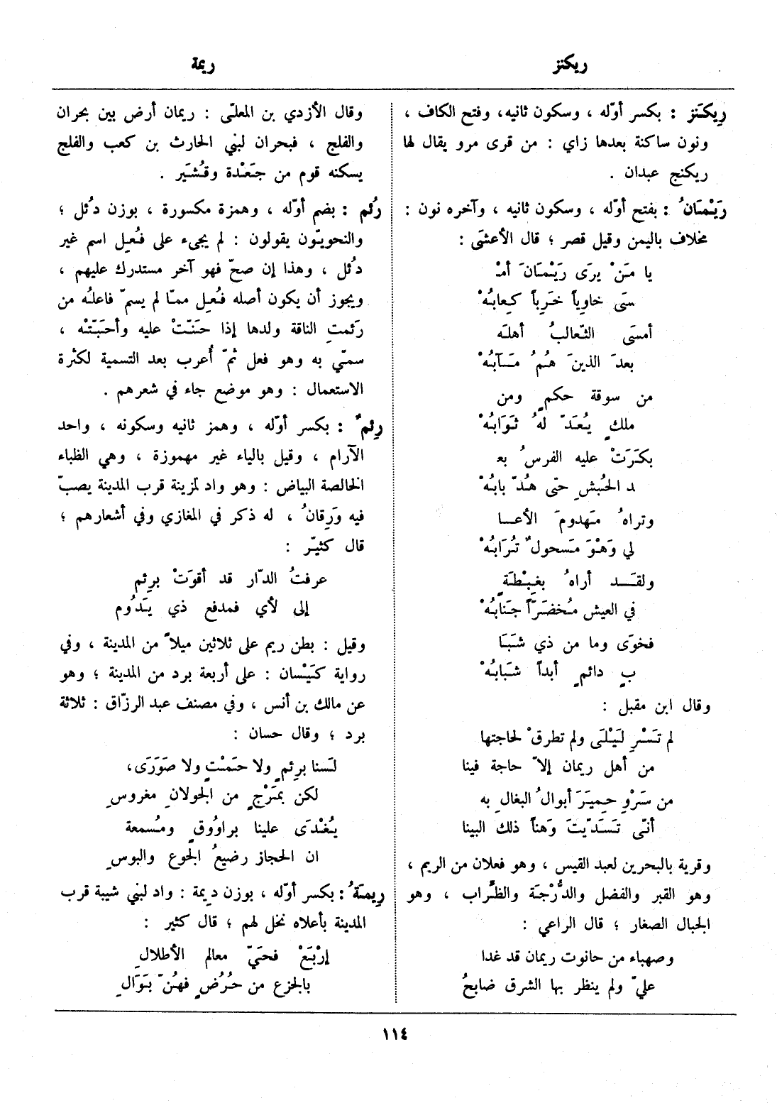 وقال الأزدي بن المعلّى: ريمان أرض بين بحران والفلج، فبحران لبني الحارث بن كعب والفلج يسكنه قوم من جعدة وقشير.