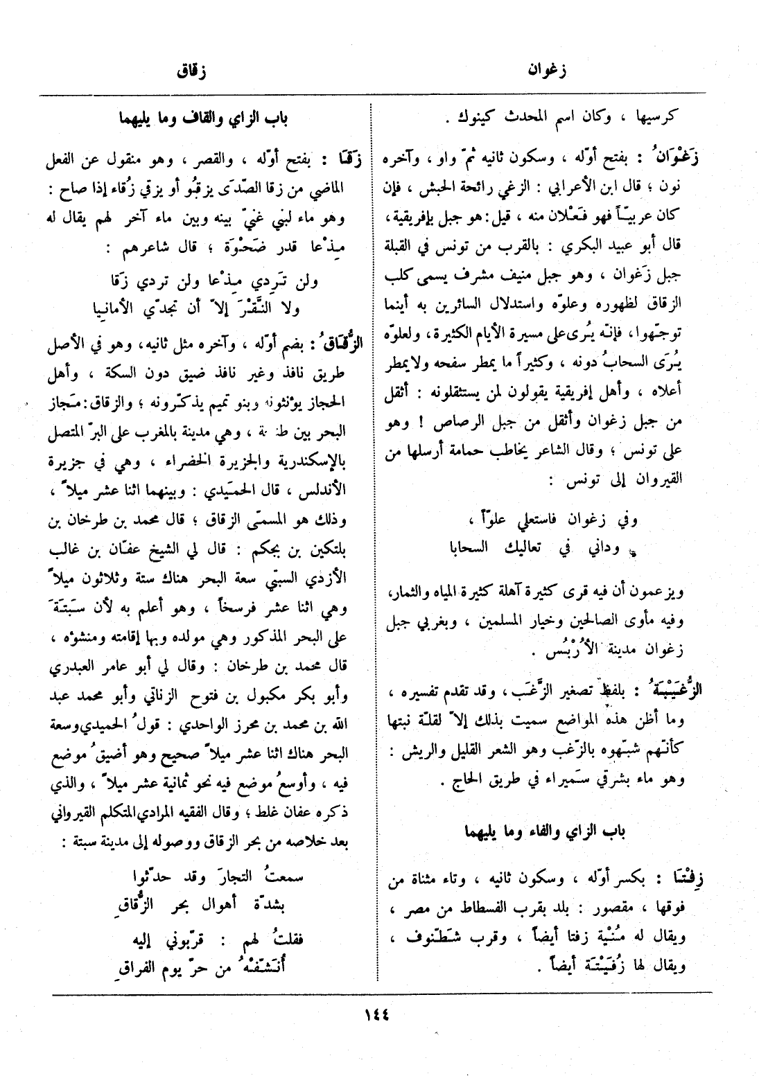 باب الزاي والقاف وما يليهما