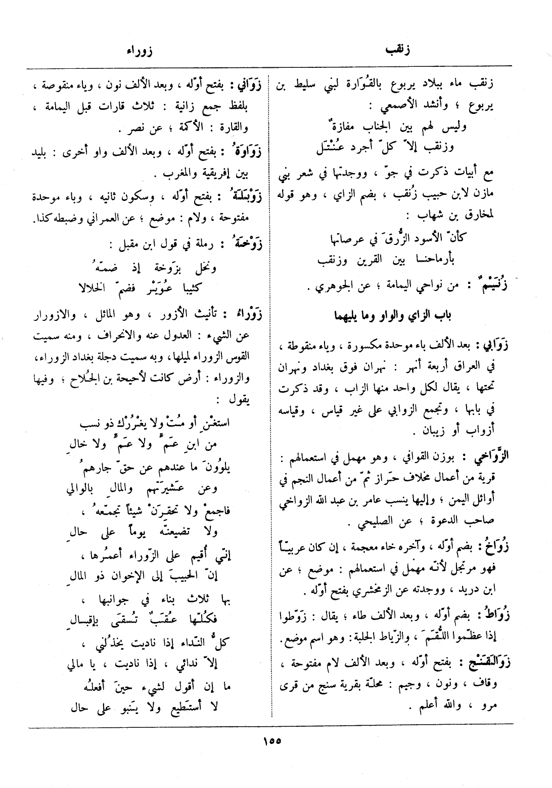 زنقب ماء ببلاد يربوع بالقوارة لبني سليط بن يربوع، وأنشد الأصمعي: