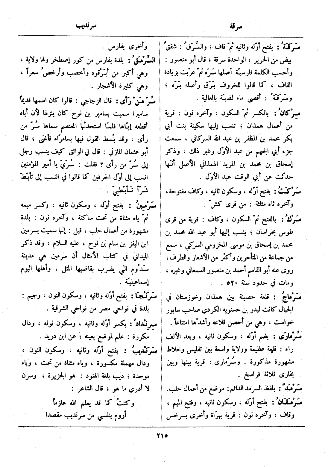 وأحسب الكلمة فارسيّة أصلها سره ثمّ عرّبت بزيادة القاف، كما قالوا للخروف برق وأصله بره، وسرقة: أقصى ماء لضبّة بالعالية.