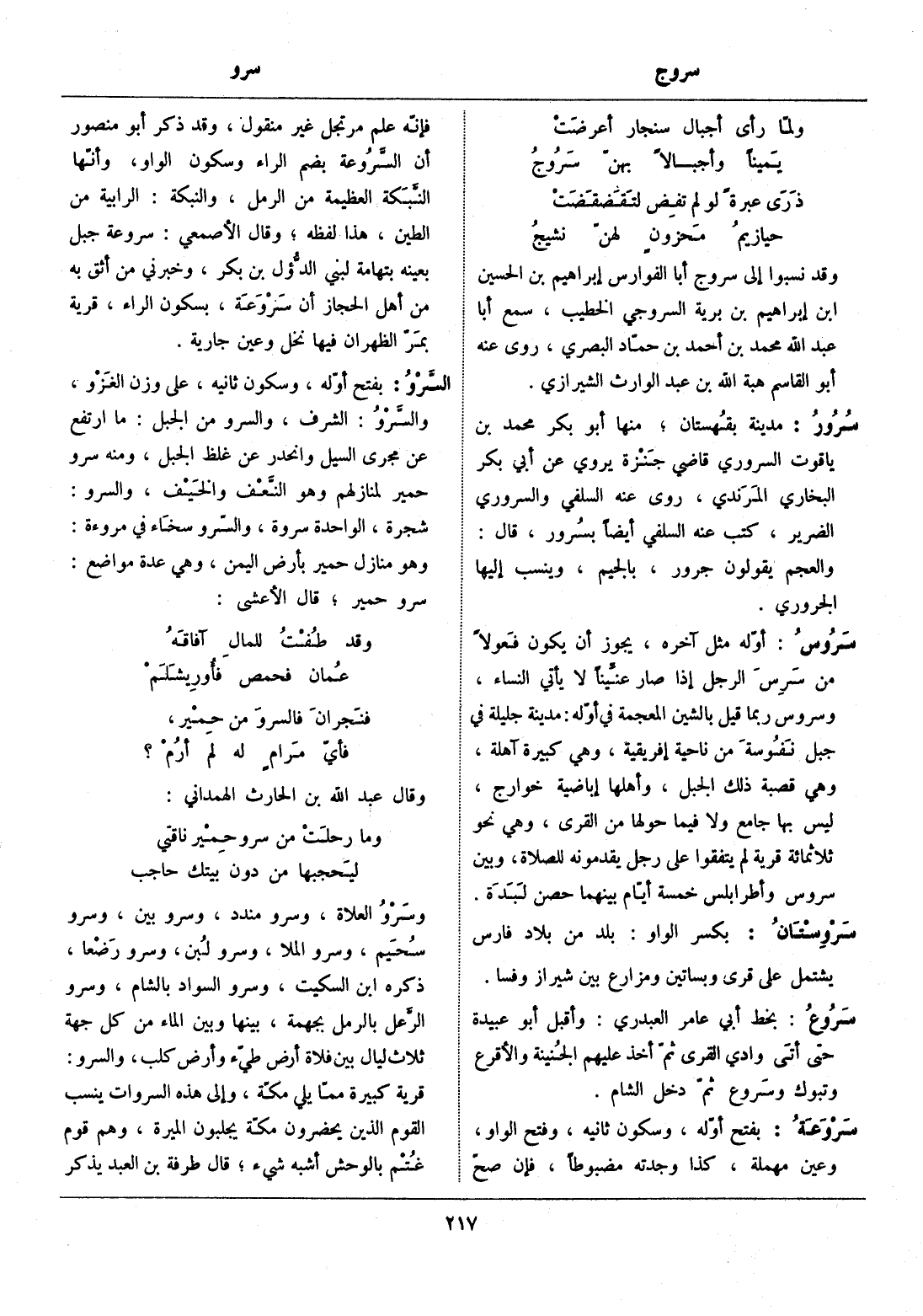 بفتح أوّله، وسكون ثانيه، على وزن الغزو، والسّرو: الشرف، والسرو من الجبل: ما ارتفع عن مجرى السيل وانحدر عن غلظ الجبل، ومنه سرو حمير لمنازلهم وهو النّعف والخيف، والسرو: