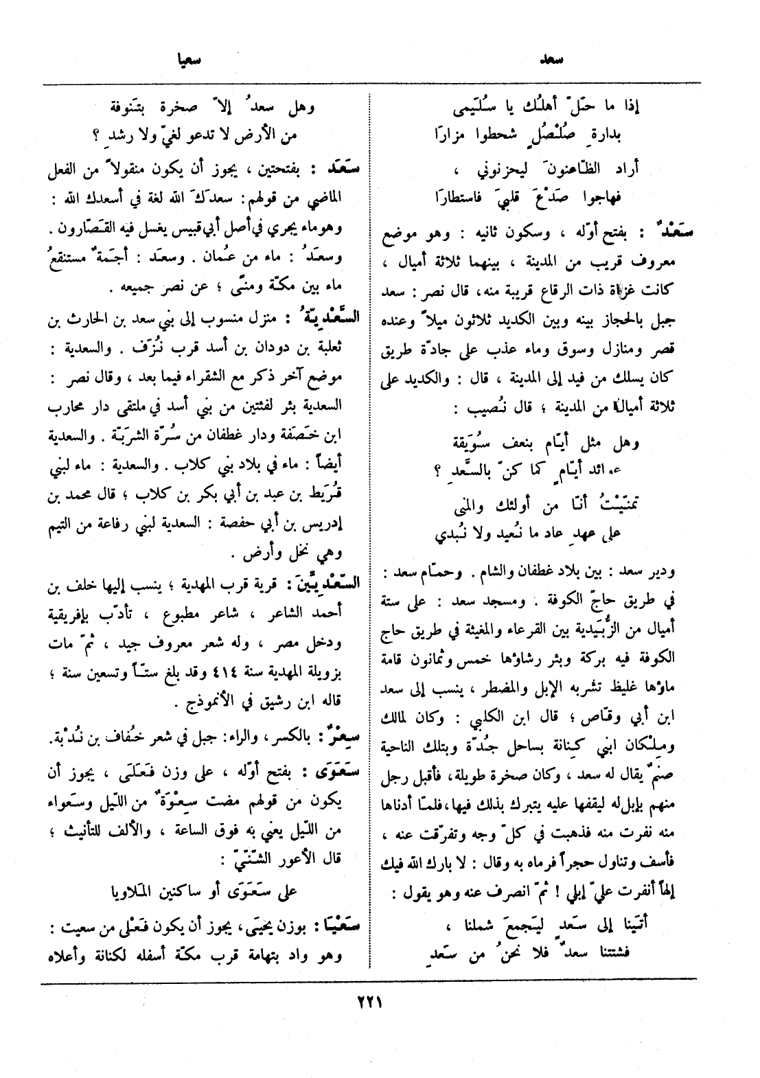 منزل منسوب إلى بني سعد بن الحارث بن ثعلبة بن دودان بن أسد قرب نزف. والسعدية: