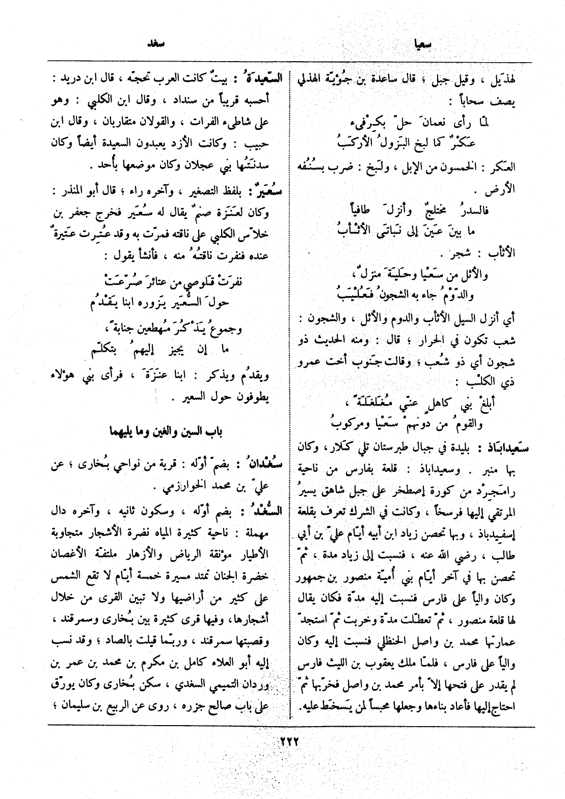 بضم أوّله، وسكون ثانيه، وآخره دال مهملة: ناحية كثيرة المياه نضرة الأشجار متجاوبة الأطيار مؤنقة الرياض والأزهار ملتفّة الأغصان خضرة الجنان تمتد مسيرة خمسة أيّام لا تقع الشمس على كثير من أراضيها ولا تبين القرى من خلال أشجارها، وفيها قرى كثيرة بين بخارى وسمرقند، وقصبتها سمرقند، وربّما قيلت بالصاد، وقد نسب إليه أبو العلاء كامل بن مكرم بن محمد بن عمر بن وردان التميمي السغدي، سكن بخارى وكان يورّق على باب صالح جزره، روى عن الربيع بن سليمان،