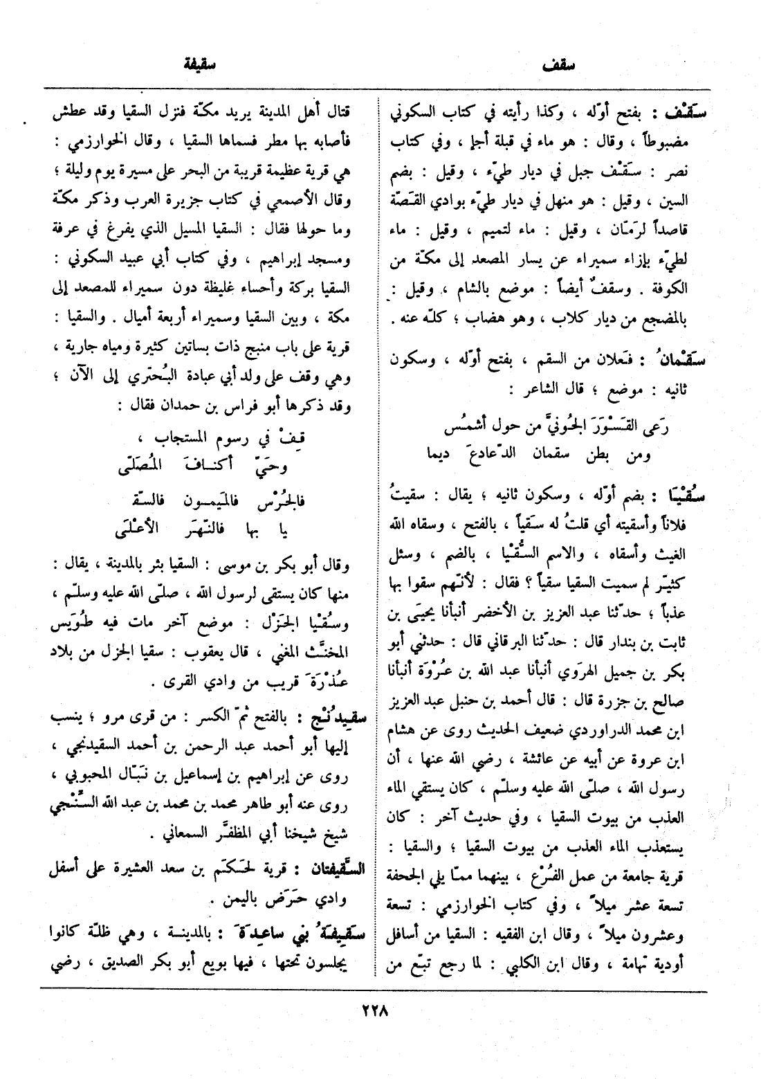 بفتح أوّله، وكذا رأيته في كتاب السكوني مضبوطا، وقال: هو ماء في قبلة أجإ، وفي كتاب نصر: سقف جبل في ديار طيّء، وقيل: بضم السين، وقيل: هو منهل في ديار طيّء بوادي القصّة قاصدا لرمّان، وقيل: ماء لتميم، وقيل: ماء لطيّء بإزاء سميراء عن يسار المصعد إلى مكّة من الكوفة. وسقف أيضا: موضع بالشام، وقيل: