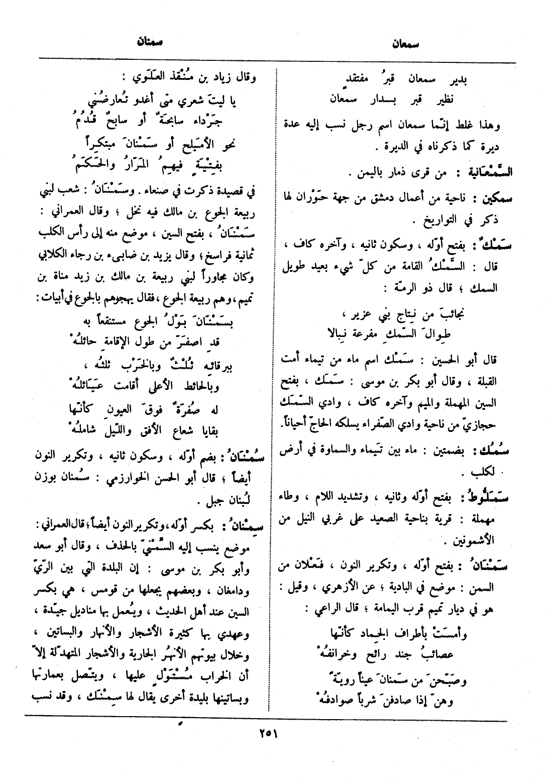 في قصيدة ذكرت في صنعاء. وسمنان: شعب لبني ربيعة الجوع بن مالك فيه نخل، وقال العمراني: