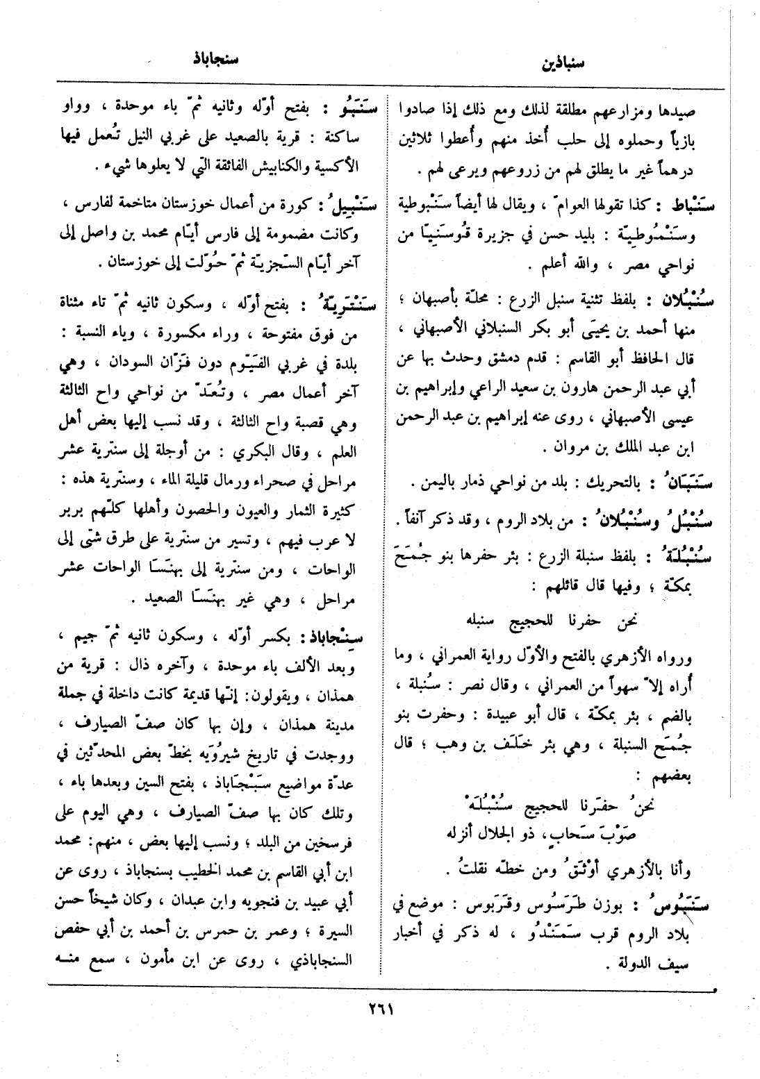 بلفظ تثنية سنبل الزرع: محلّة بأصبهان، منها أحمد بن يحيى أبو بكر السنبلاني الأصبهاني، قال الحافظ أبو القاسم: قدم دمشق وحدث بها عن أبي عبد الرحمن هارون بن سعيد الراعي وإبراهيم بن عيسى الأصبهاني، روى عنه إبراهيم بن عبد الرحمن ابن عبد الملك بن مروان.