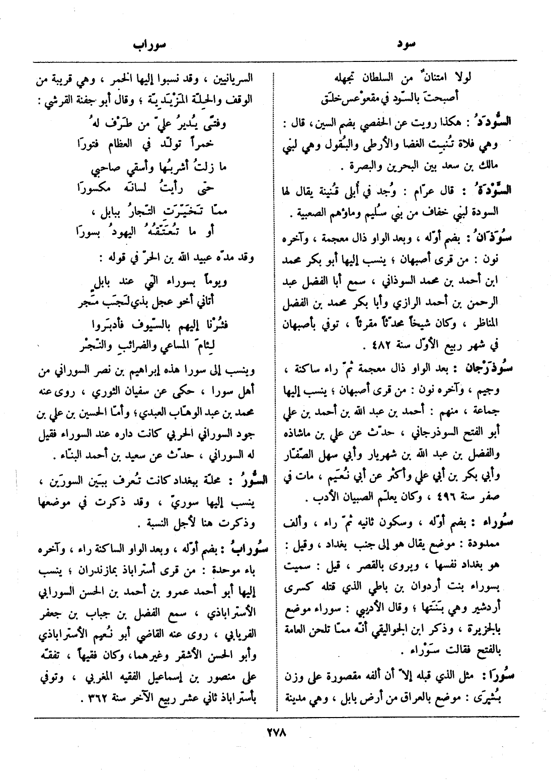 بضم أوّله، وبعد الواو ذال معجمة، وآخره نون: من قرى أصبهان، ينسب إليها أبو بكر محمد ابن أحمد بن محمد السوذاني، سمع أبا الفضل عبد الرحمن بن أحمد الرازي وأبا بكر محمد بن الفضل المناظر، وكان شيخا محدّثا مقرئا، توفي بأصبهان في شهر ربيع الأوّل سنة 482.