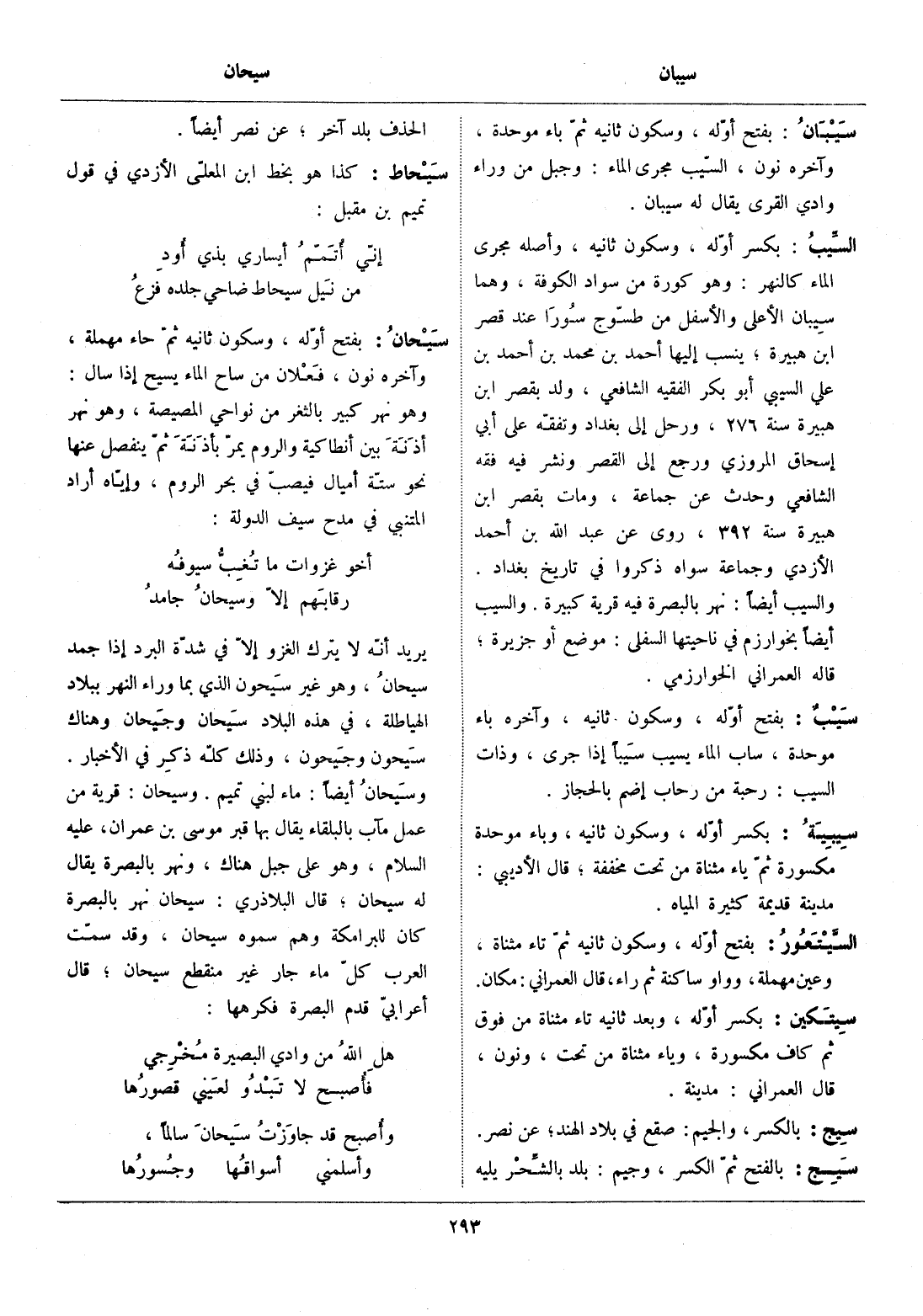 يريد أنّه لا يترك الغزو إلّا في شدّة البرد إذا جمد سيحان، وهو غير سيحون الذي بما وراء النهر ببلاد الهياطلة، في هذه البلاد سيحان وجيحان وهناك سيحون وجيحون، وذلك كلّه ذكر في الأخبار.
