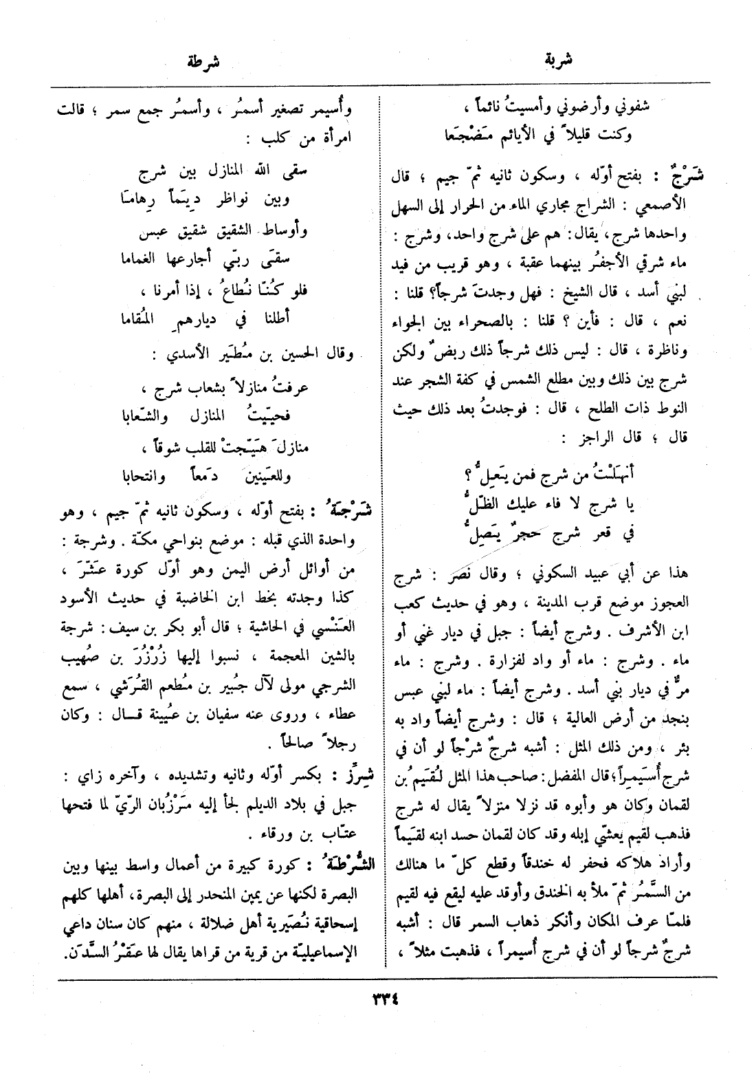 نعم، قال: فأين؟ قلنا: بالصحراء بين الجواء وناظرة، قال: ليس ذلك شرجا ذلك ربض ولكن شرج بين ذلك وبين مطلع الشمس في كفة الشجر عند النوط ذات الطلح، قال: فوجدت بعد ذلك حيث قال، قال الراجز: