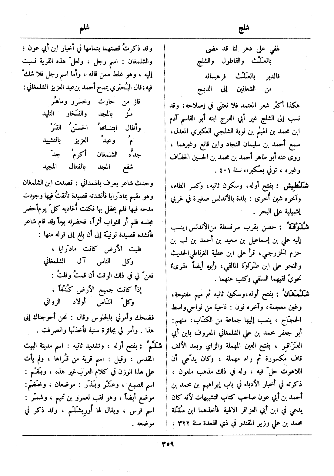 هكذا أكثر شعر المعتمد فلا نعتني في إصلاحه، وقد نسب إلى الشلج غير أبي الفرج ابنه أبو القاسم آدم ابن محمد بن الهيثم بن نوبة الشلجي العكبري المعدل، سمع أحمد بن سليمان النجاد وابن قانع وغيرهما، روى عنه أبو طاهر أحمد بن محمد بن الحسين الخفّاف وغيره، توفي بعكبراء سنة 401.