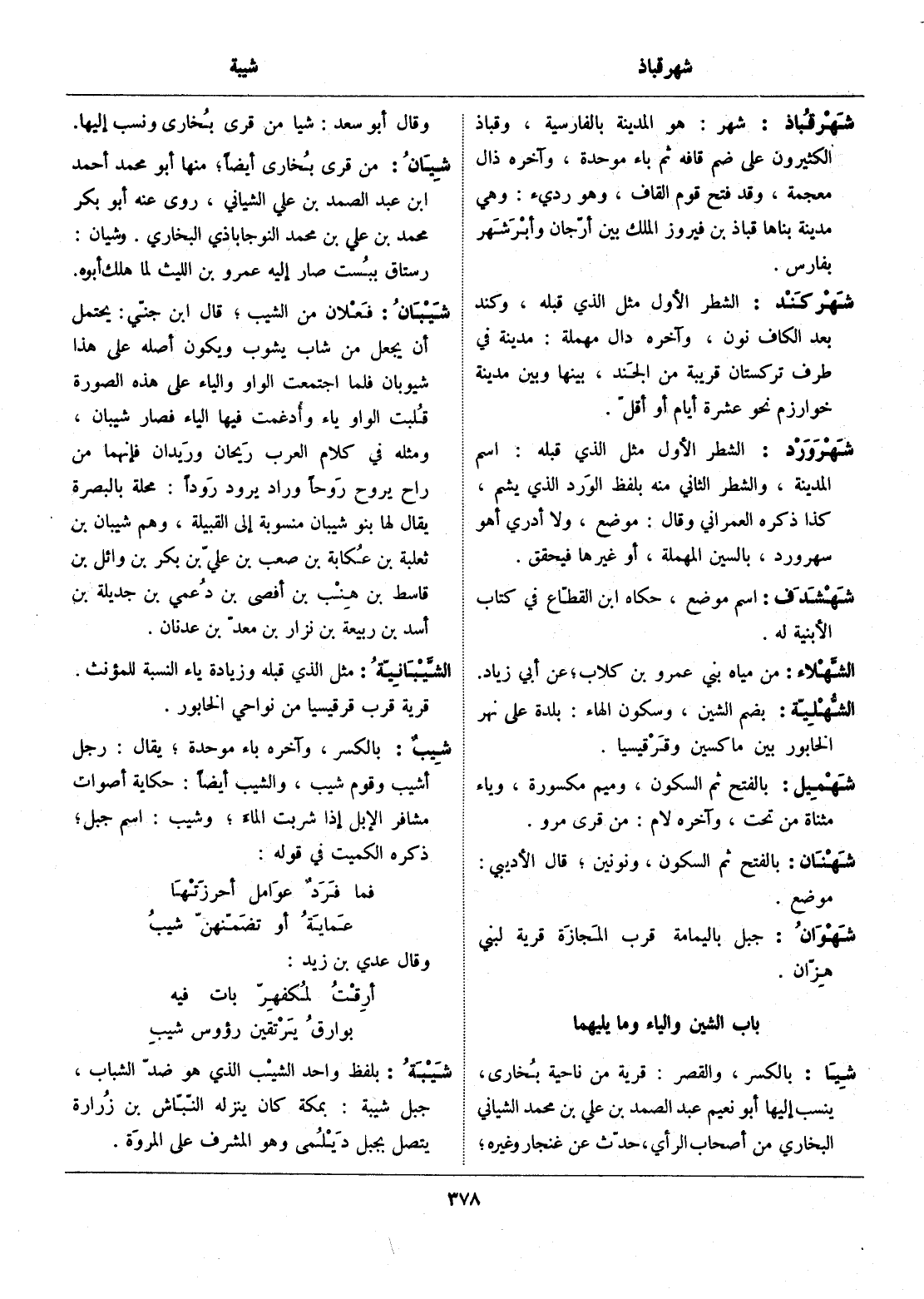 شهر: هو المدينة بالفارسية، وقباذ الكثيرون على ضم قافه ثم باء موحدة، وآخره ذال معجمة، وقد فتح قوم القاف، وهو رديء: وهي مدينة بناها قباذ بن فيروز الملك بين أرّجان وأبرشهر بفارس.
