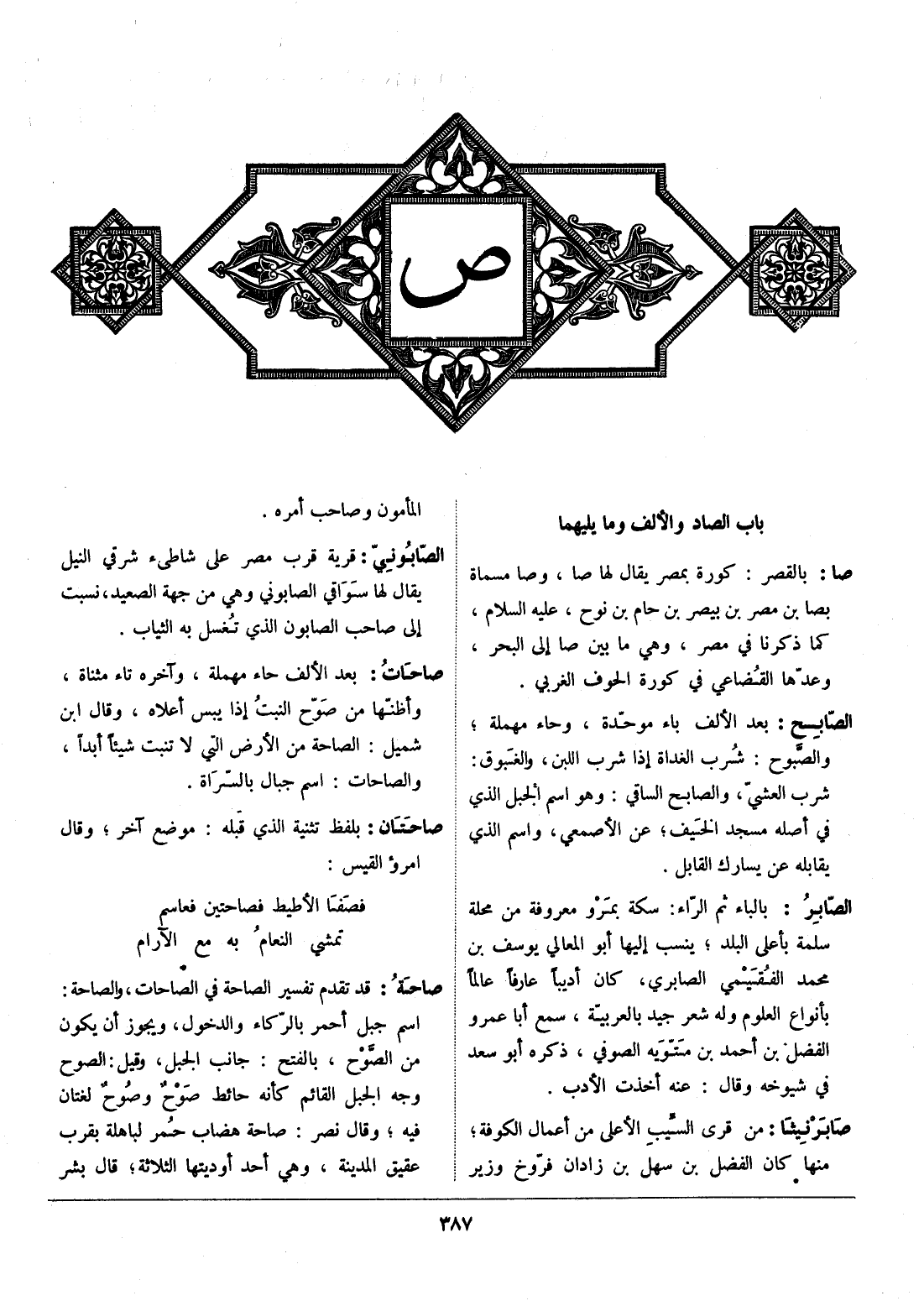 شرب العشيّ، والصابح الساقي: وهو اسم الجبل الذي في أصله مسجد الخيف، عن الأصمعي، واسم الذي يقابله عن يسارك القابل.